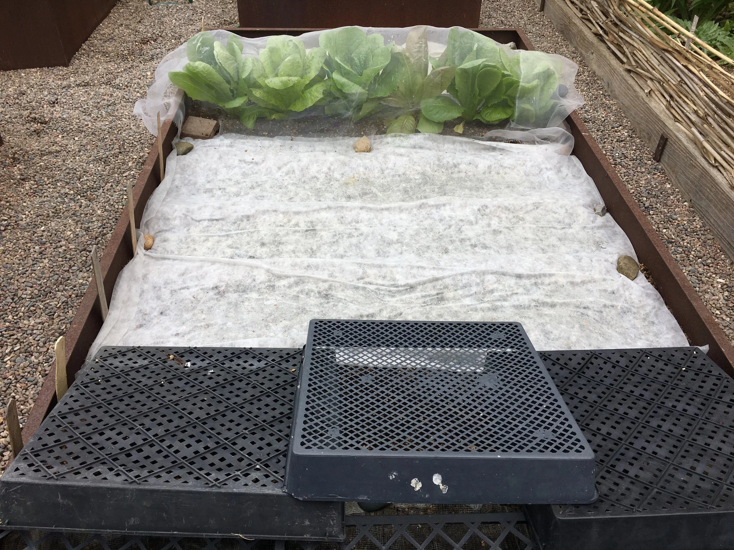 The lettuce and greens bed: mesclun, spinach, arugula and four kinds of lettuce.