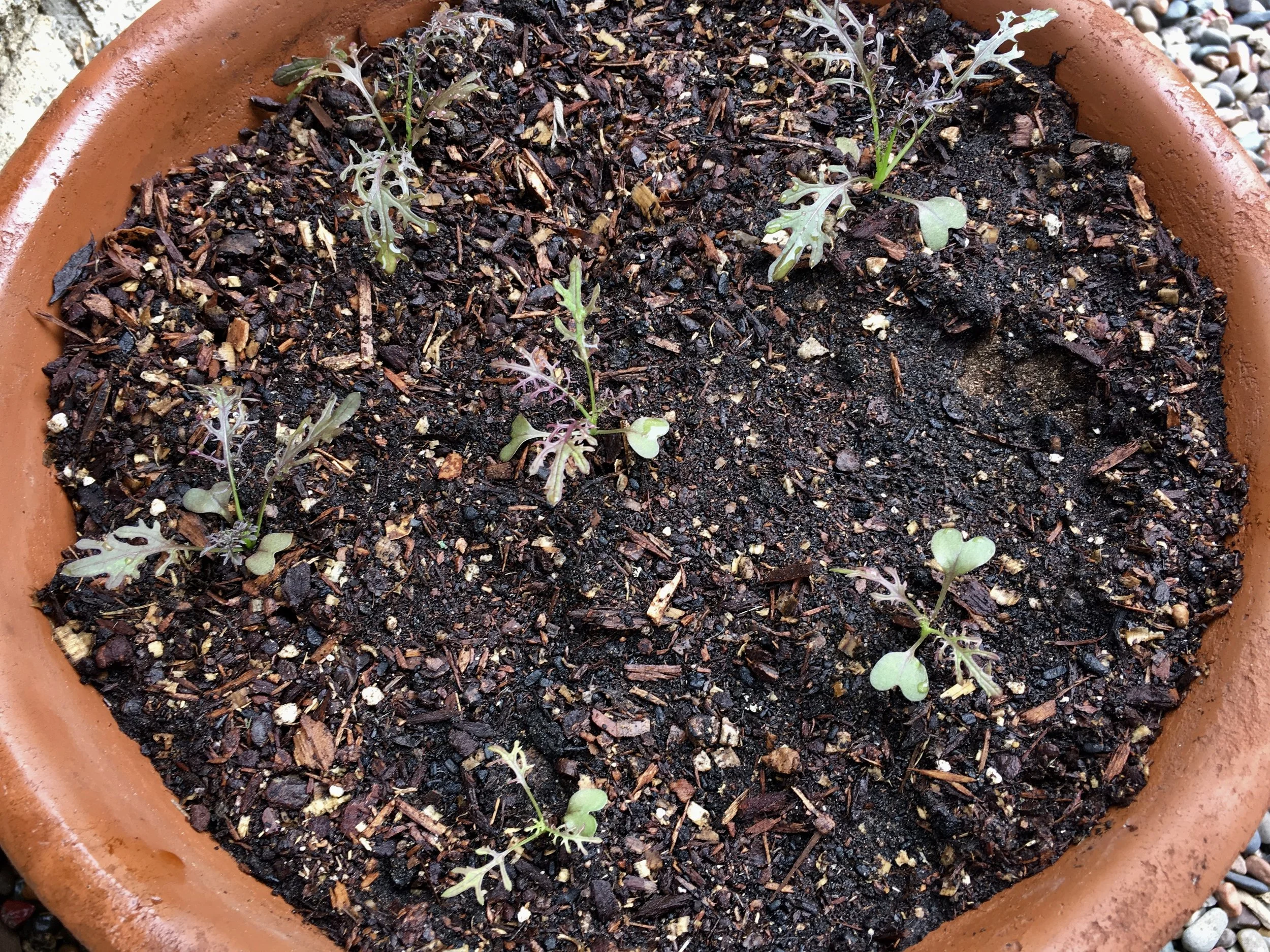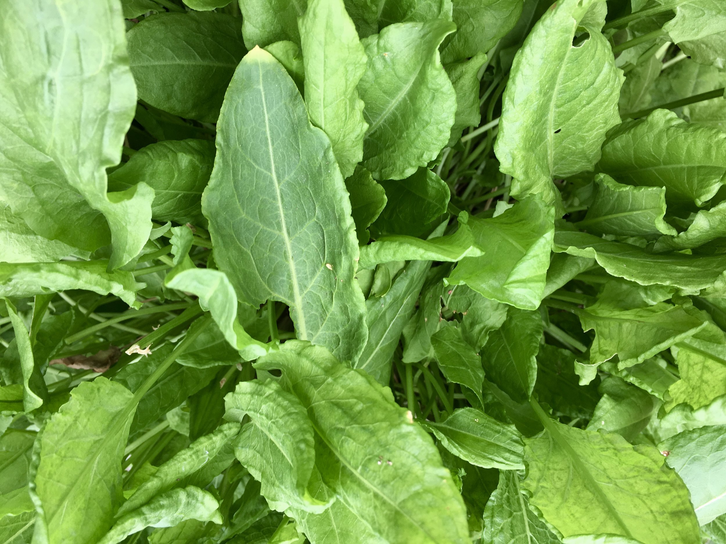 French sorrel in a 12-inch container near the kitchen.