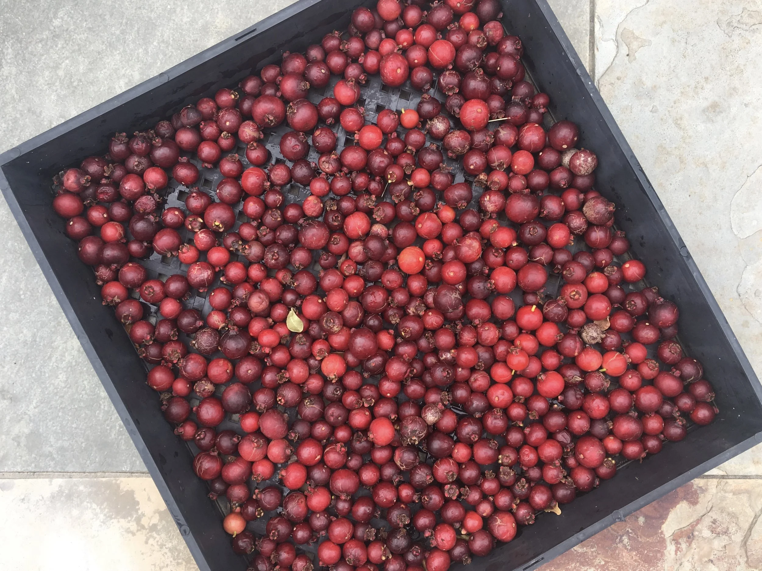 My husband shakes the guava tree and the ripe fruit falls onto garden trays. It’s easier than picking them individually. We probably harvested at least five pounds last week.