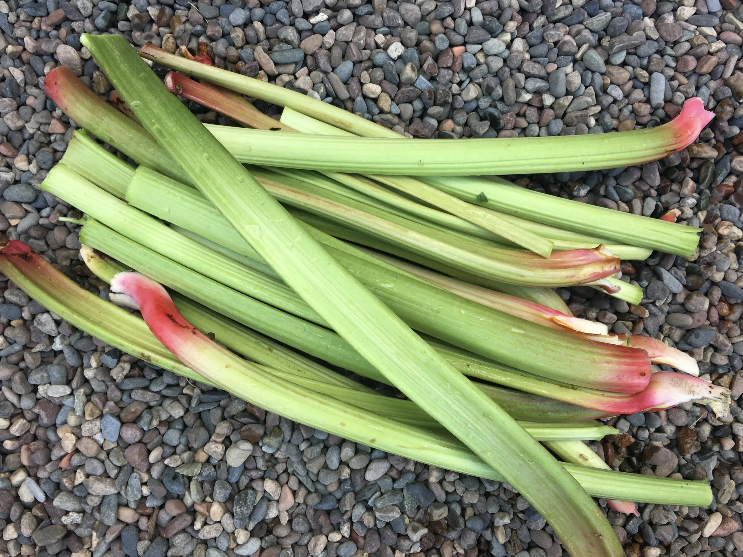 The rhubarb ends its run later this fall and is quite robust now. I tidied the four foot wide plant and harvested about a third of the largest stalks. Compost layered around the plant will ready it for next season.