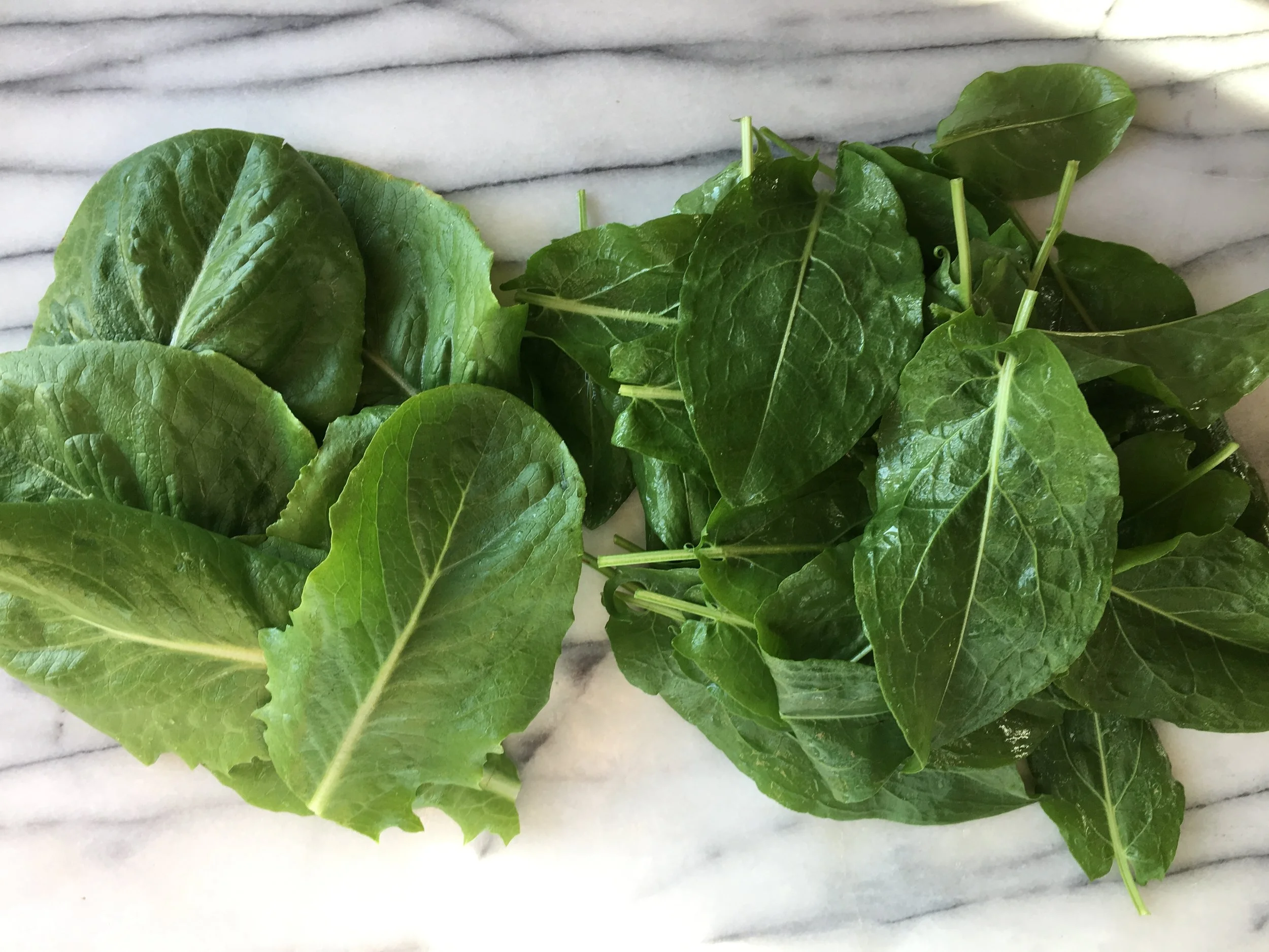 I gathered a few leaves of romaine lettuce and French sorrel and added some mustard greens for a salad over the weekend. The Creamy Chive Dressing with chives from the garden was refreshing.