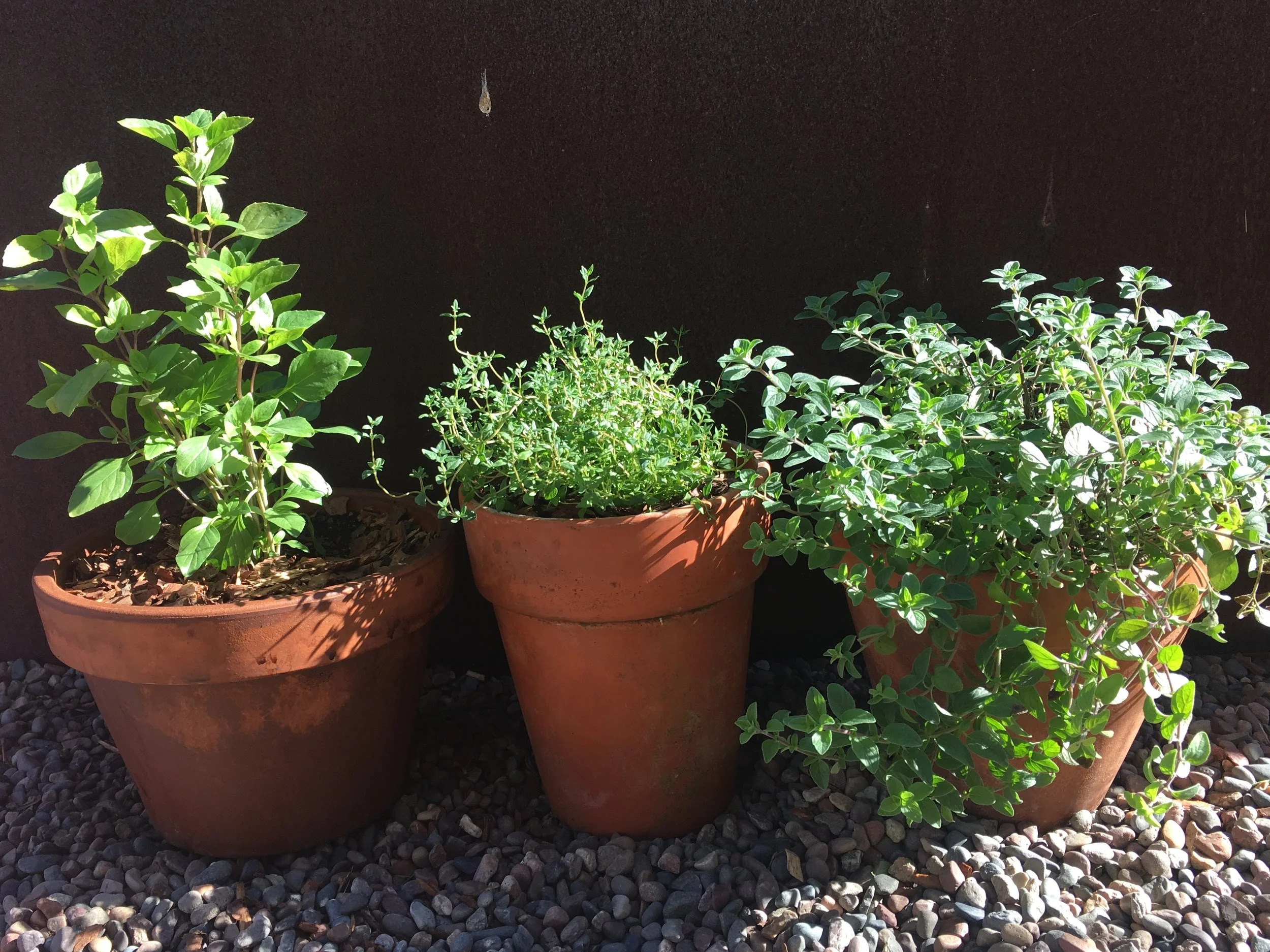 Greek basil, thyme and oregano in the winter light