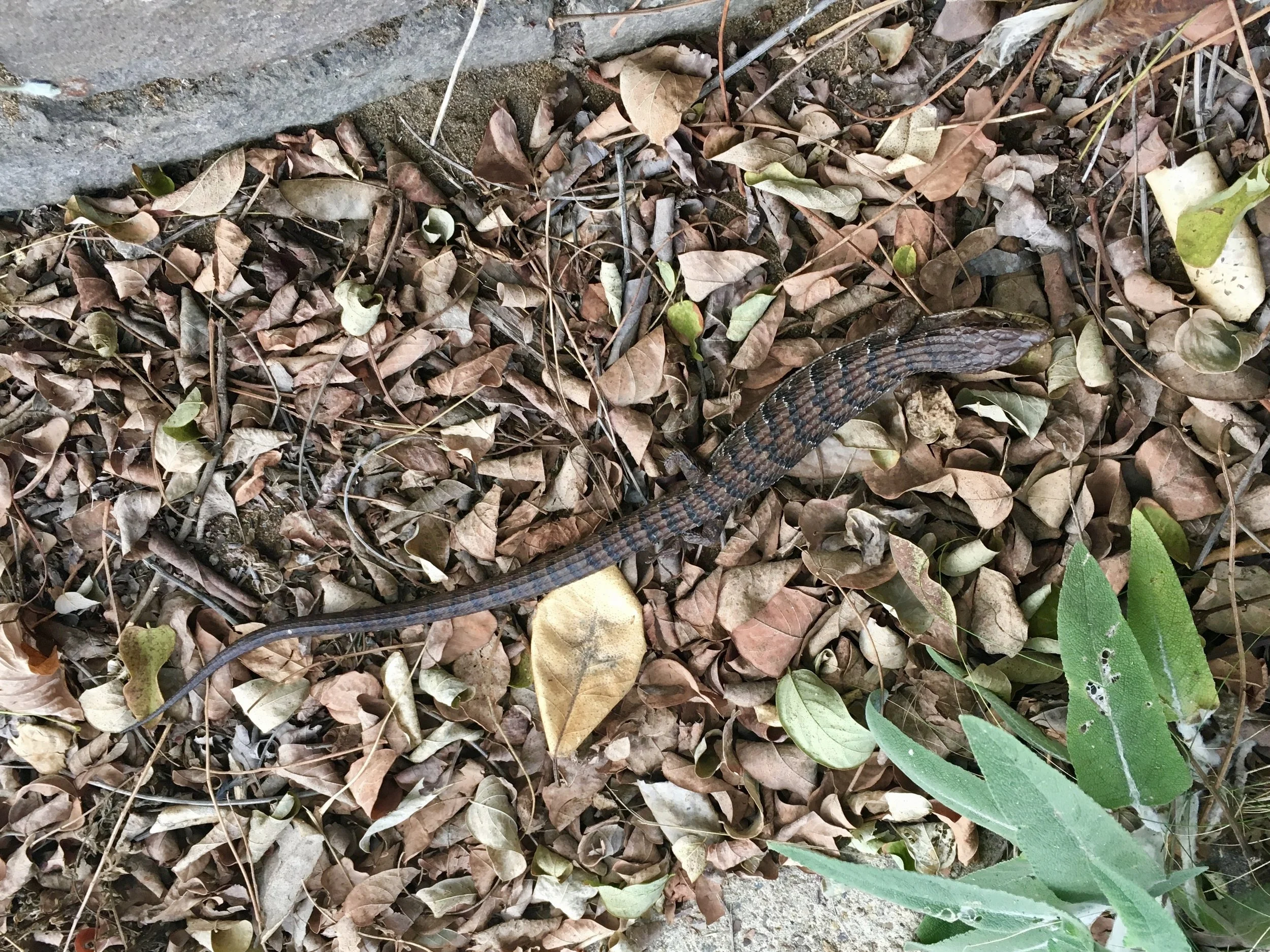A southern alligator lizard lives in our garden. We meet up occasionally, unexpectedly—under the artichoke, in the leaf litter, near the the rock pile. Our dog cornered the lizard in the kitchen once. That was an adventure.
