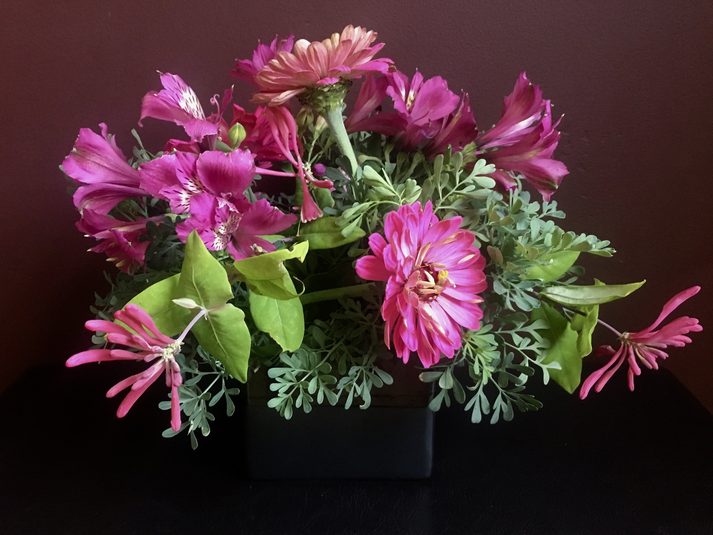 The zinnias in the vegetable garden reliably produce blooms to attract beneficial insects and delight me with bouquets. I may let them continue until Christmas.