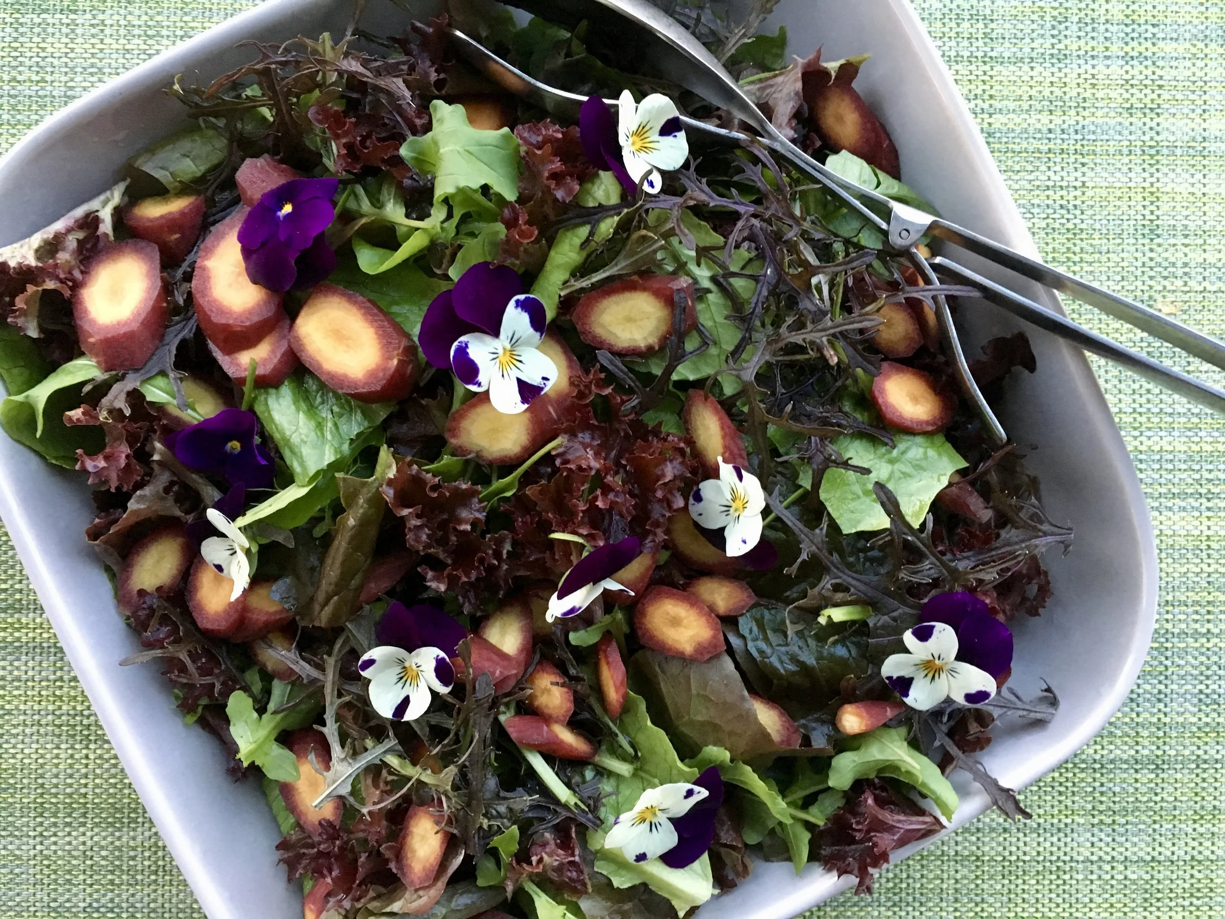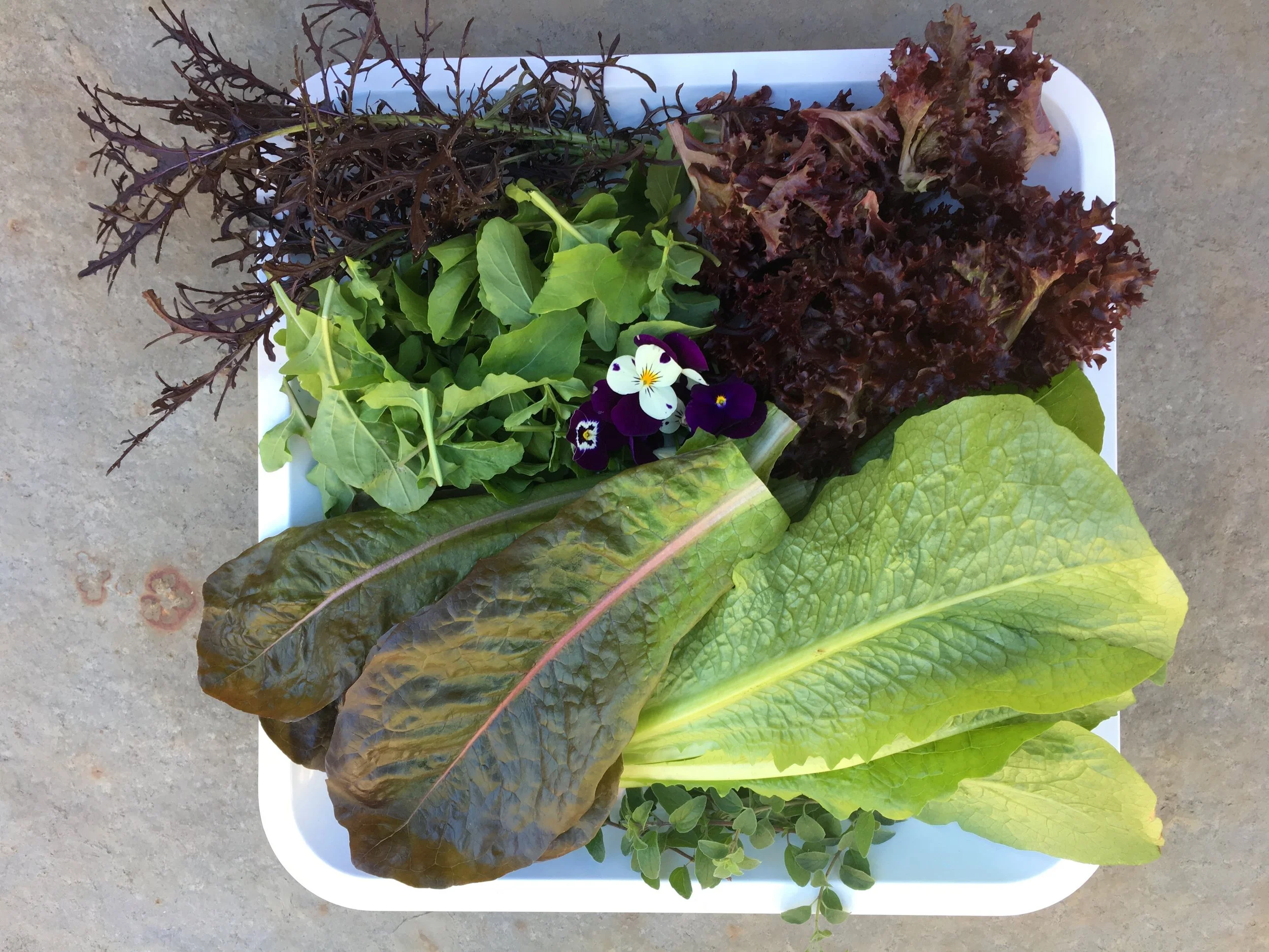 I also sent my son back to Los Angeles with lettuce, arugula, mustard, oregano and violas.