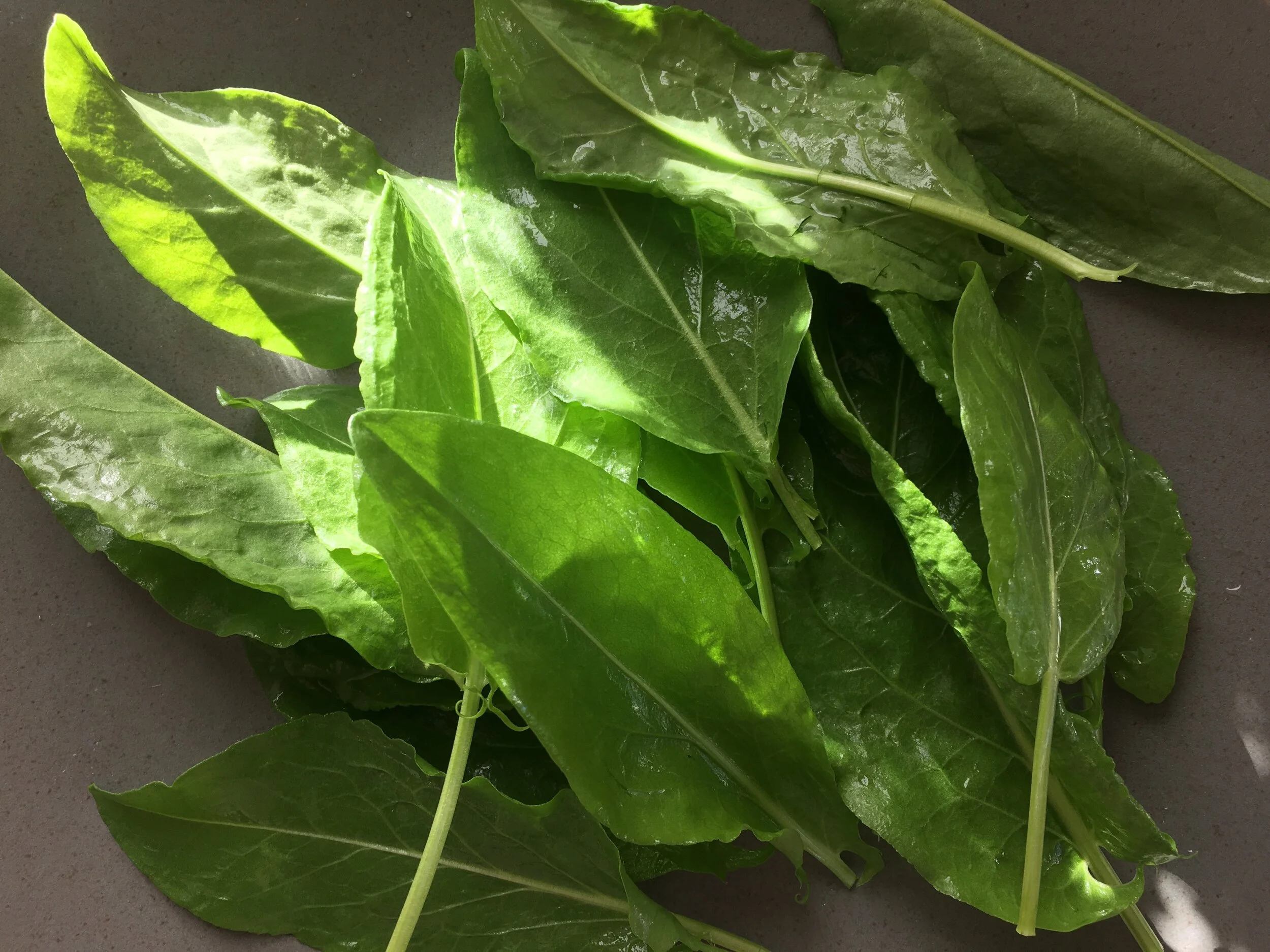 With the cooler weather, the French sorrel, grown year round in a 12-inch terra cotta pot, has lost the summer pungency and is so very lemony.