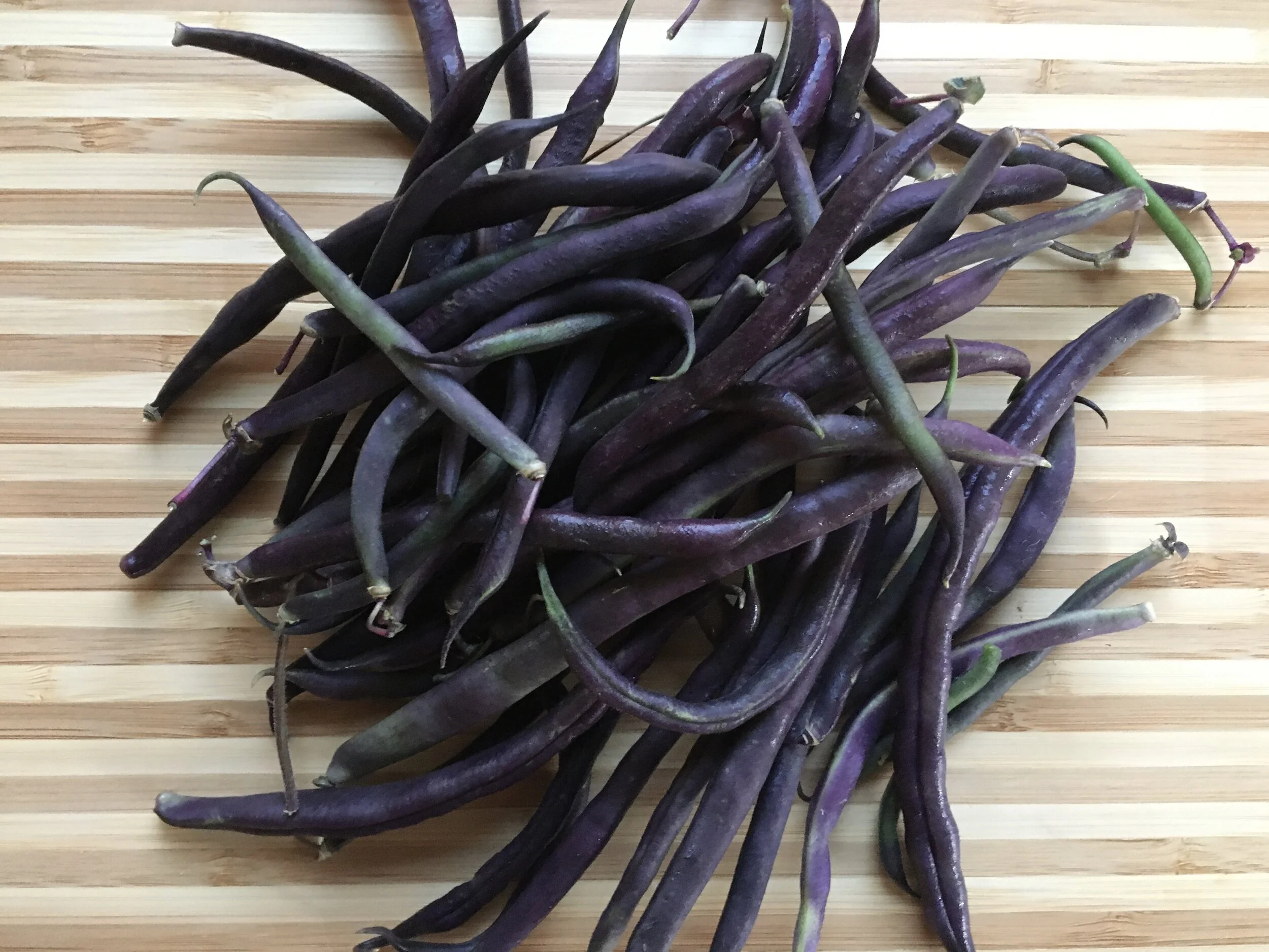 My ‘Royal Burgundy’ bush beans near the end of their run and will make way for the snow peas soon.