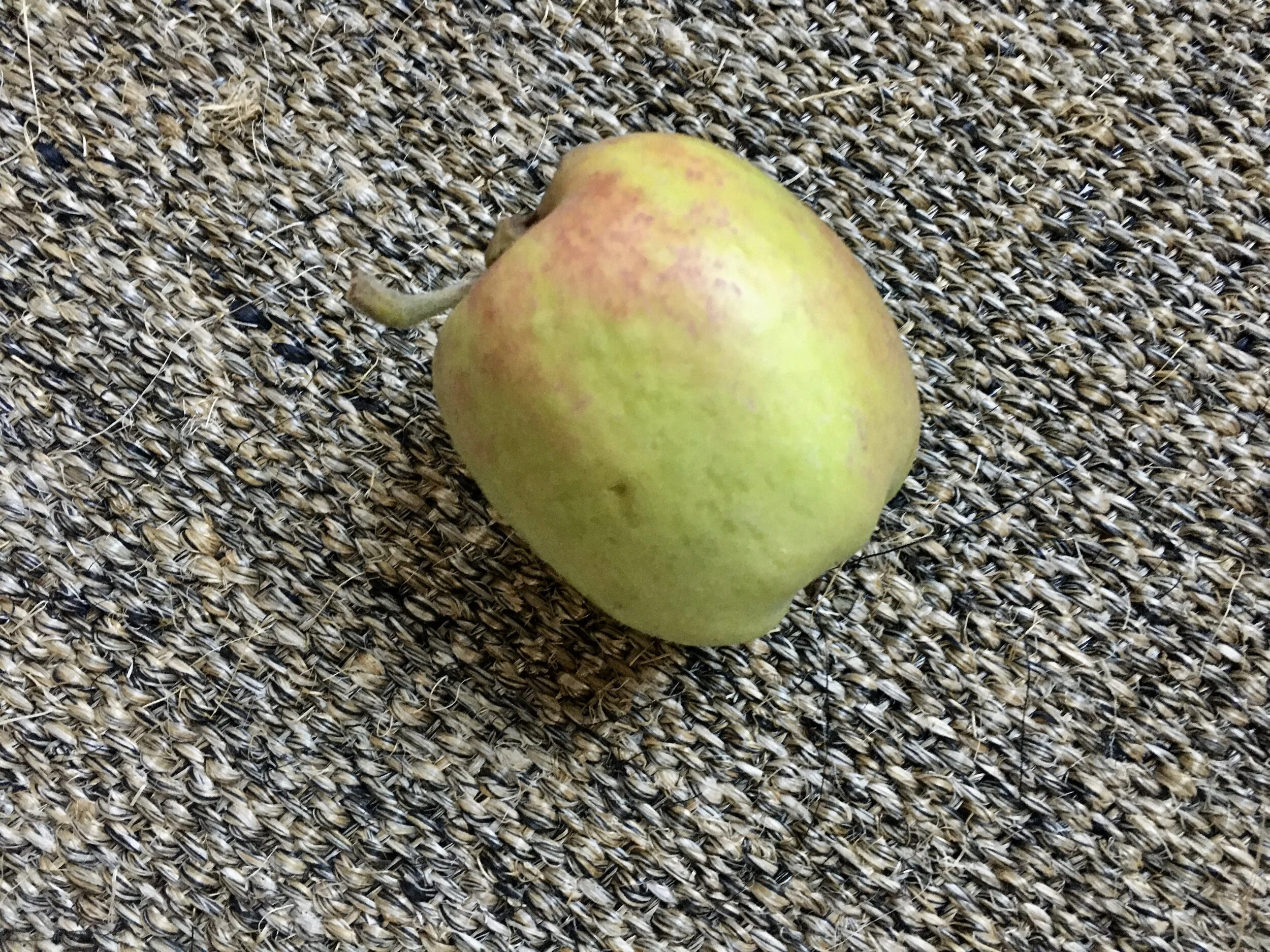 Lucy, my pointer-retriever Brittany brought in the first ‘Dorsett Golden’ apple of the fall season. It was a drop but her characteristic soft mouth did not damage it and I washed it well then diced it for my morning oatmeal.