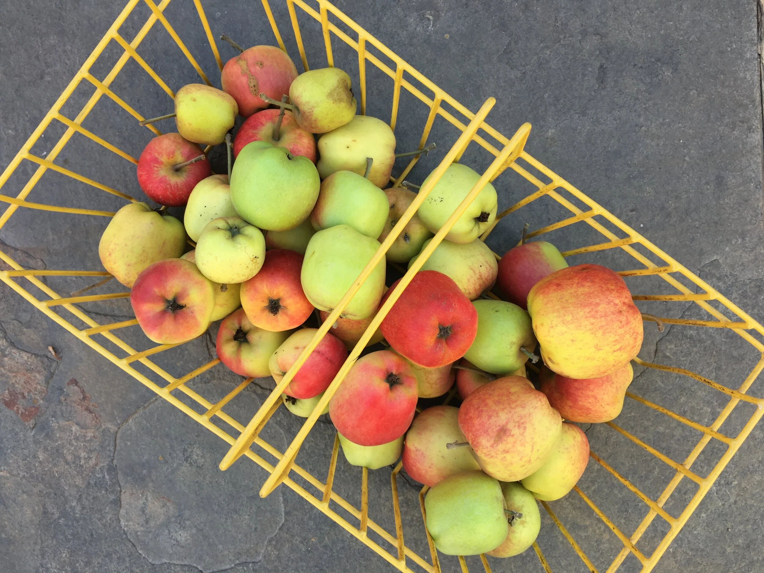 Also unexpected was the abundant second crop of ‘Dorsett Golden’ apples from our small espaliered tree. Seven pounds will make some sumptuous applesauce and apple desserts.