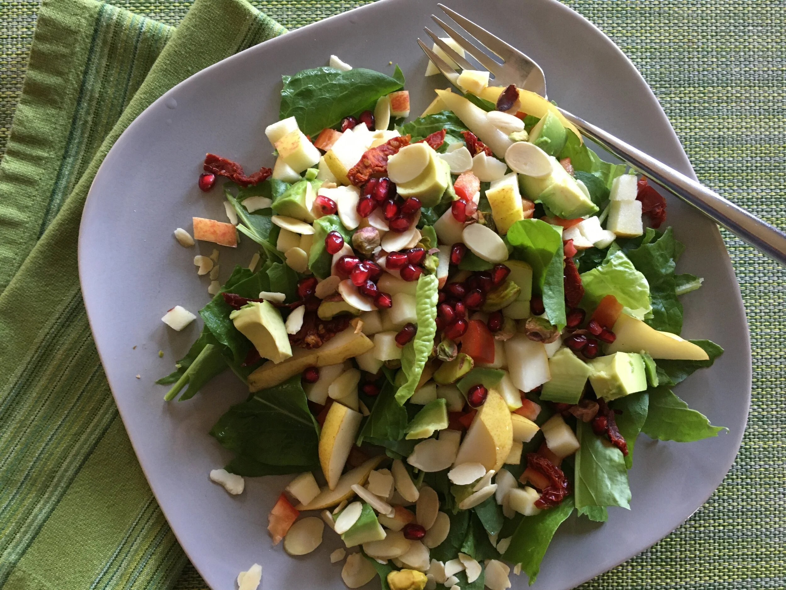 Here’s one of my fall garden salads with garden lettuce, French sorrel, apples and red pepper from the garden.