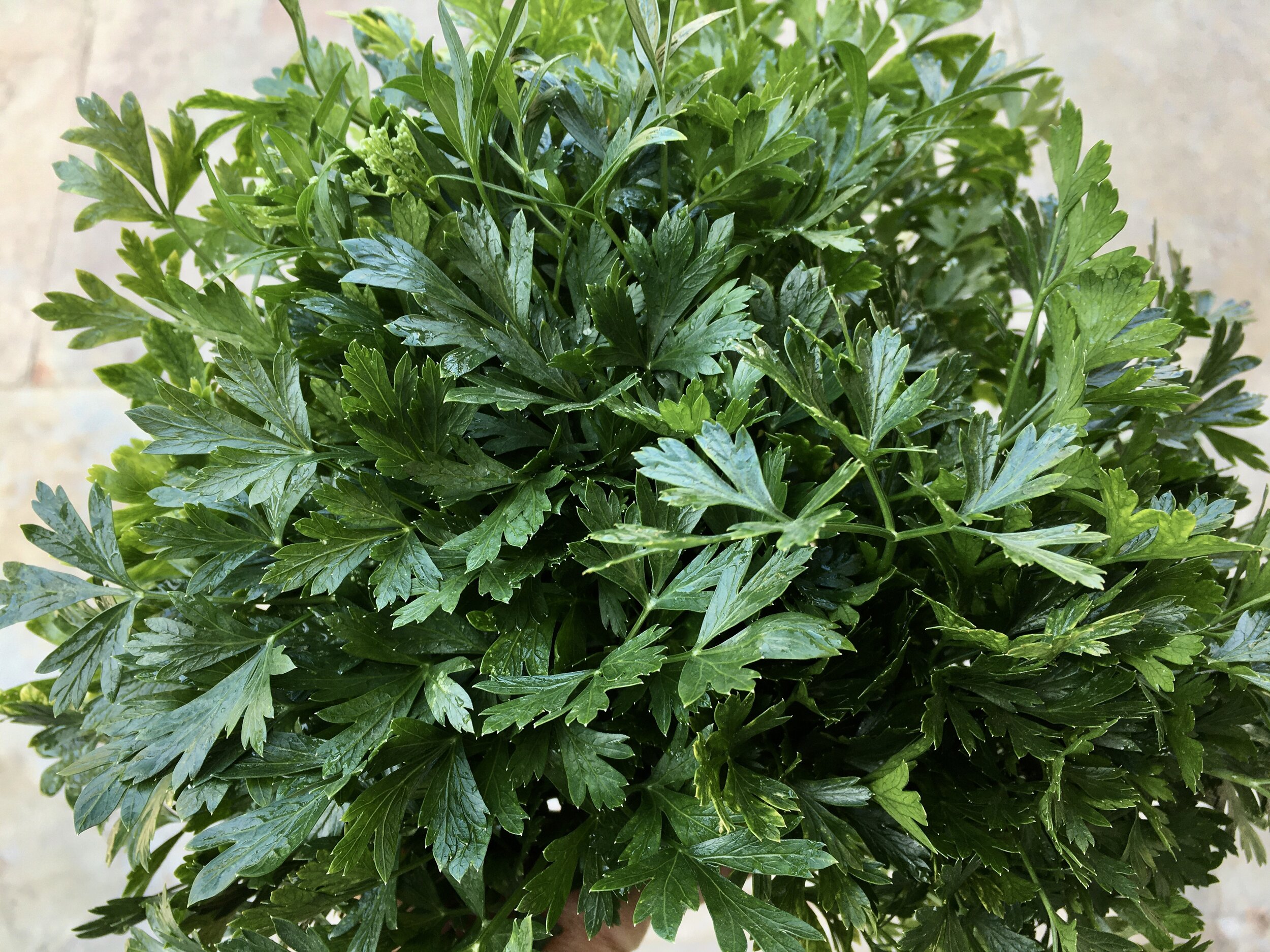 My parsley plant was encroaching on newly planted spinach and likely harboring sow bugs which snacked on the newly emerged spinach. I gave it a good shearing, sacrificing the flowers which the hover flies find irresistible. I tied up the parsley bouquet and delivered it to my favorite local cafe where I’ve shared my edible flowers. Check the gorgeous and delicious fare at Little Lion Cafe. I’m sure they’ll put it to good use.