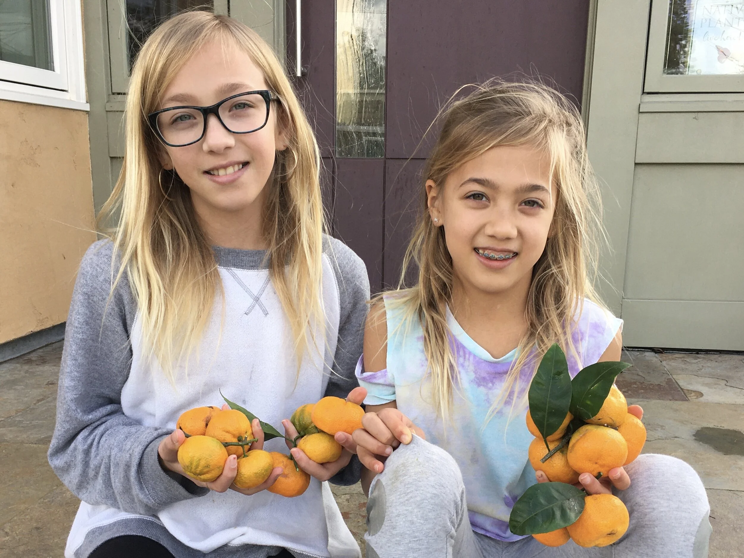 Just a few of the dozens of Satsuma tangerines we’re harvesting this month. The abundant citrus crops likely reflect with rains of last winter. And this season we’re far ahead of our usual rain totals so the tangerines are especially juicy. The recent cold nights sweeten the fruit and we are smiling, just like my little neighbors.