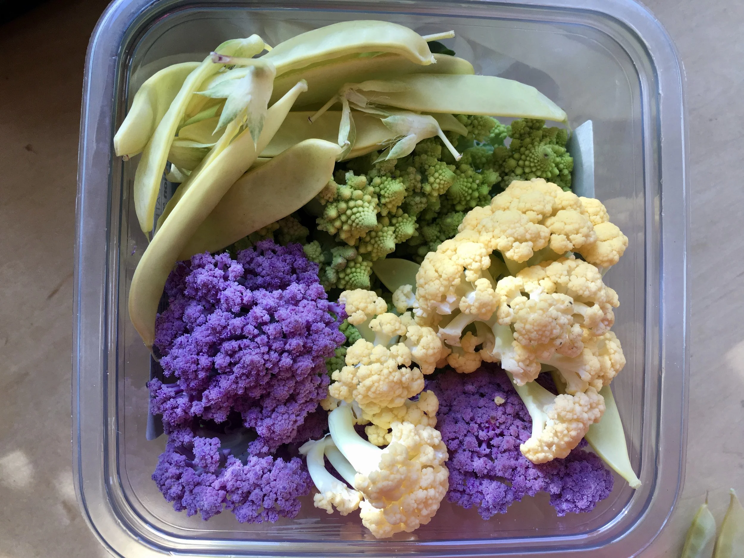 My Harvest Monday post this week will be photos of the veggies and fruit as I packed them. We shared the salad in the photo above—all from the garden.