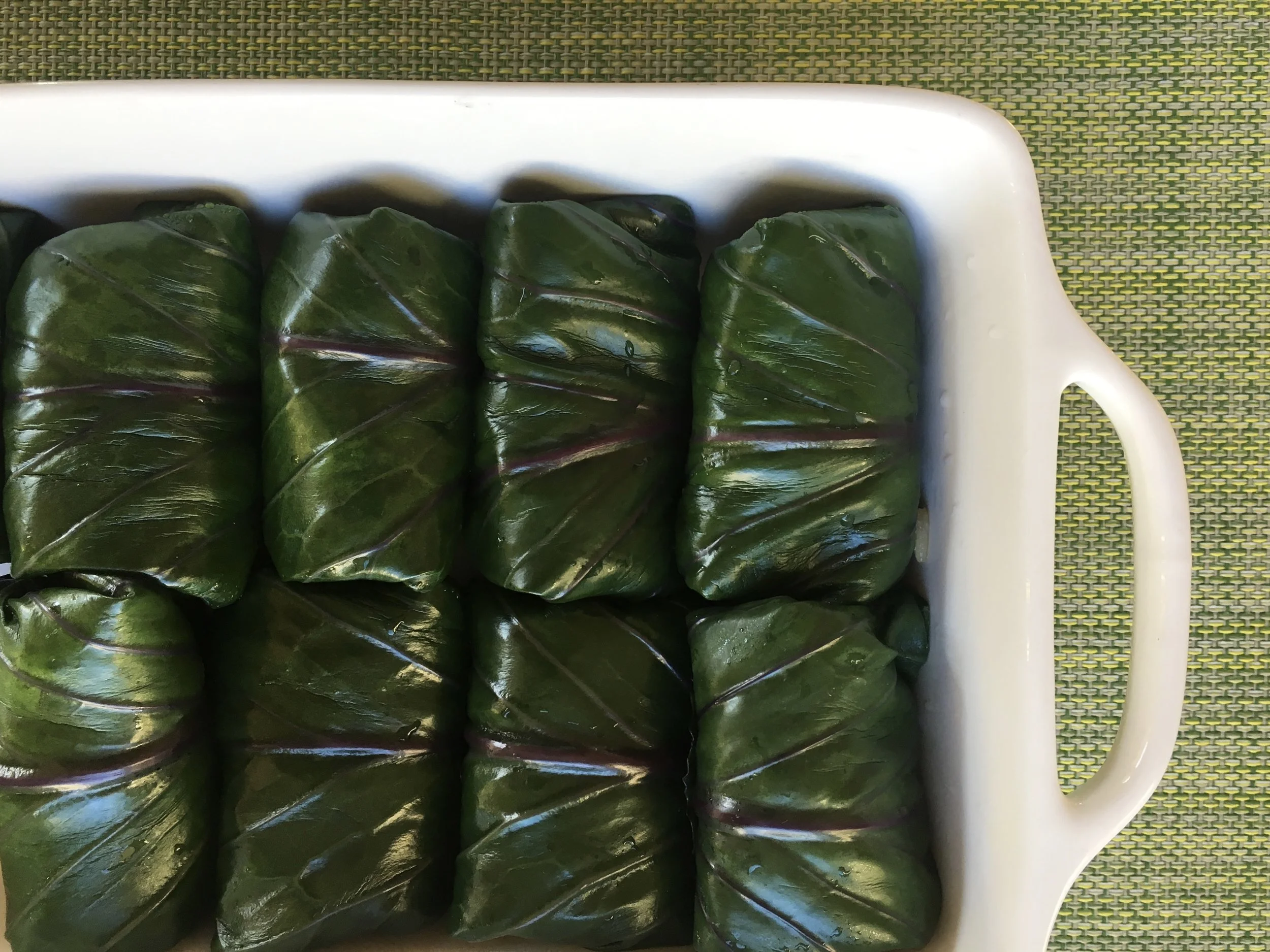 Some of the red cabbage harvested recently became Asian Stuffed Red Cabbage Rolls. They were a pleasant change from the ground beef and tomato versions of cabbage rolls.