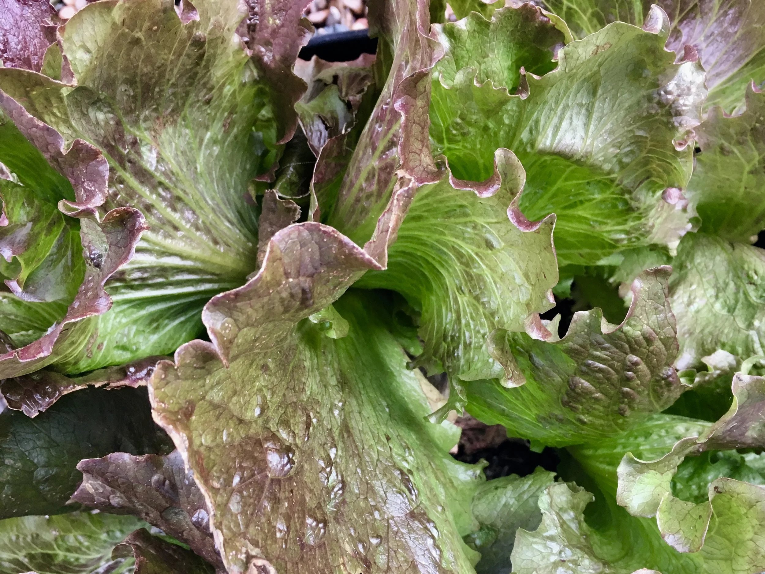 With about a dozen heads of lettuce maturing, I gave away loads of lettuce last week to neighbors and friends, but generally on a moment’s notice . So no photos of the harvested heads. They’re growing in part shade offered by the tomatoes and cool, showery weather allows lettuce season to continue.