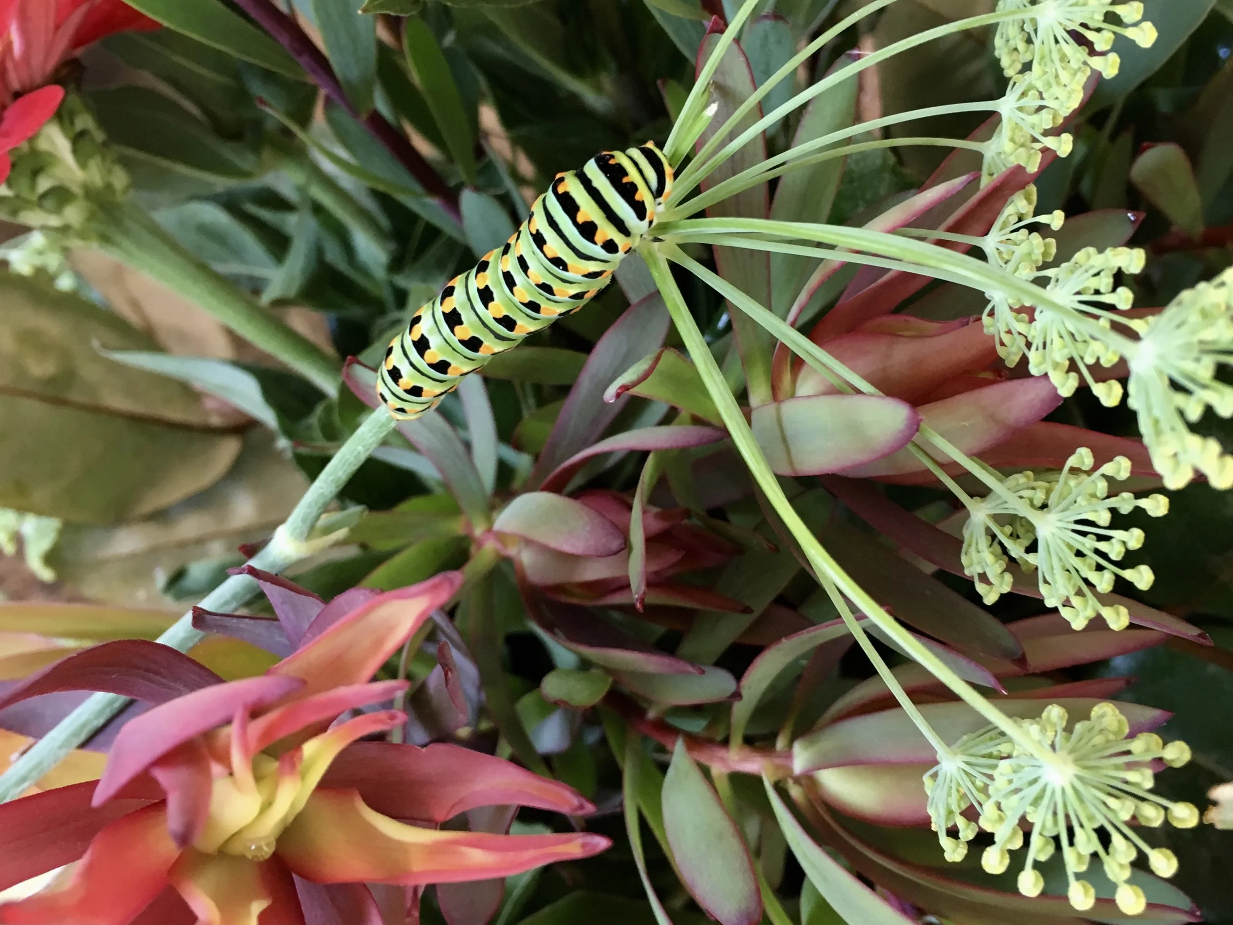 when I encountered this little critter. So I carefully carried it back to the fennel plant in my alley, anticipating the transformation.