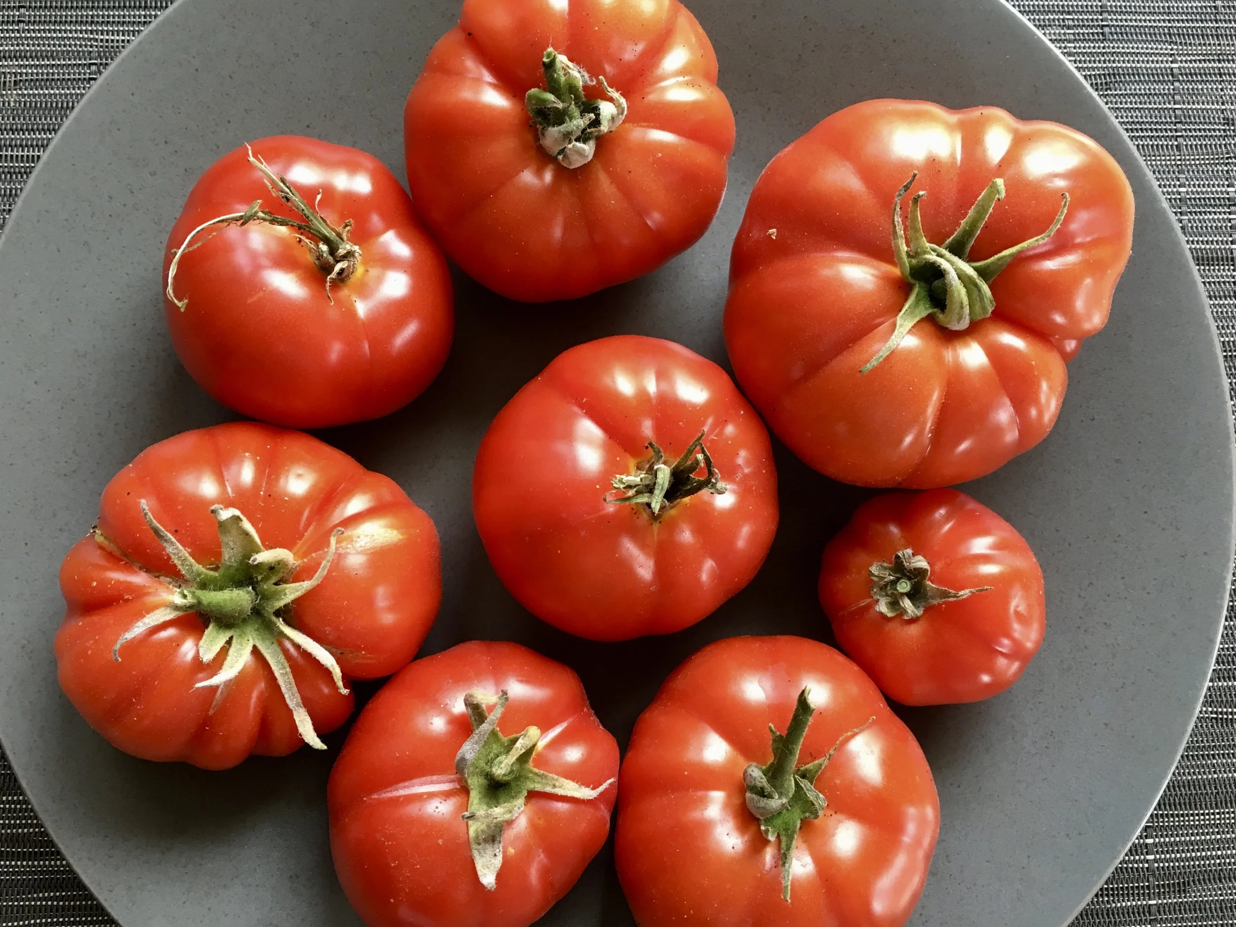 It is now tomato season. It was slow in coming with our cool summer and the typical overcast conditions. Last week was quite warm and finally the tomatoes grew larger and began to ripen.