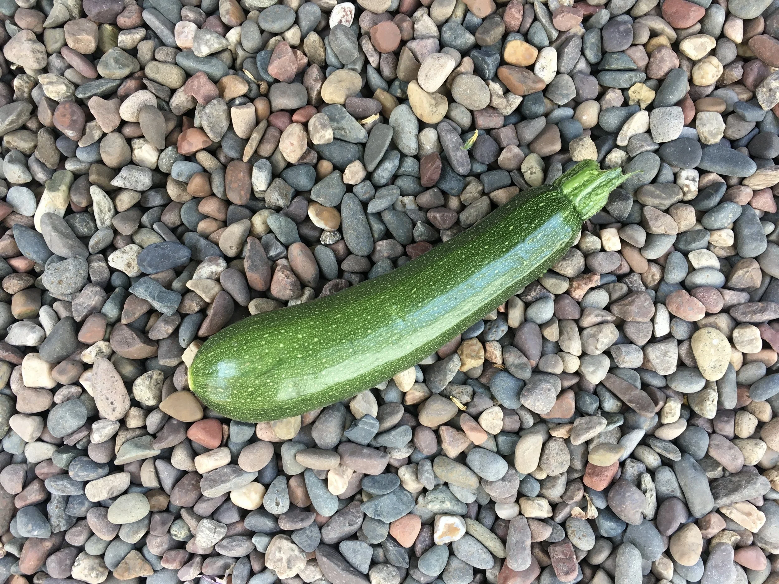 With the weather so cool it took almost two weeks for this zucchini to go from a tiny fruit to seven inches. Aren’t we all accustomed to having zucchini turn into lethal weapons almost overnight?