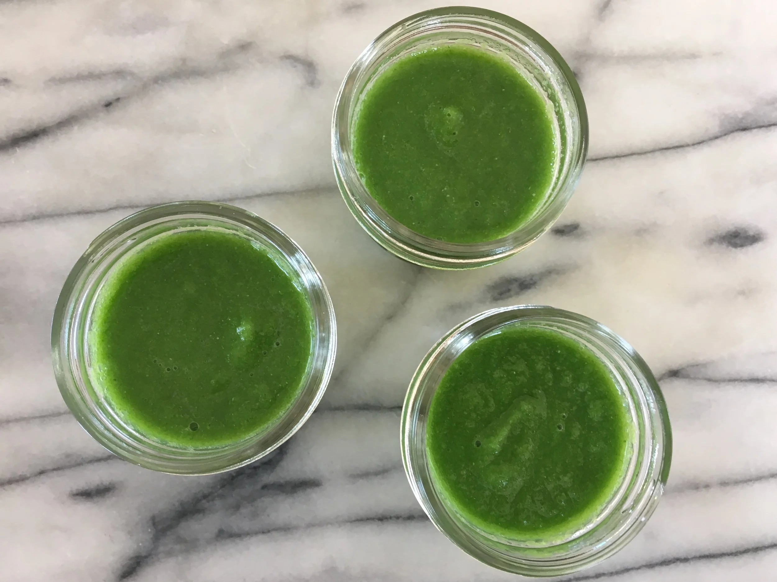 With the pile of beans I made pureed green beans for my grandson who just started solid food last week. These little jam jars went to the freezer until my next visit.