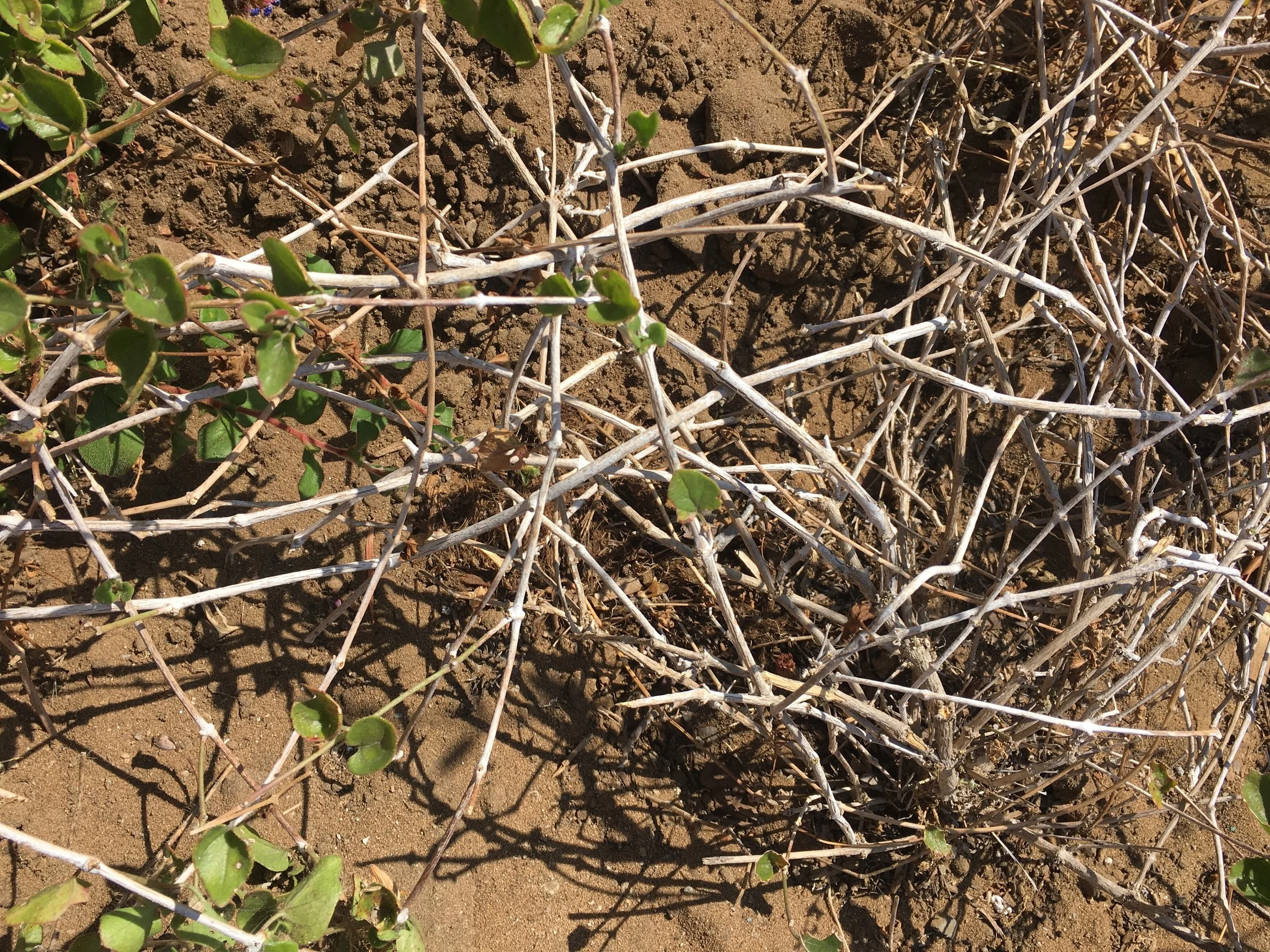 Mirabilis going summer dormant at Sunset Cliffs Natural Park, San Diego.