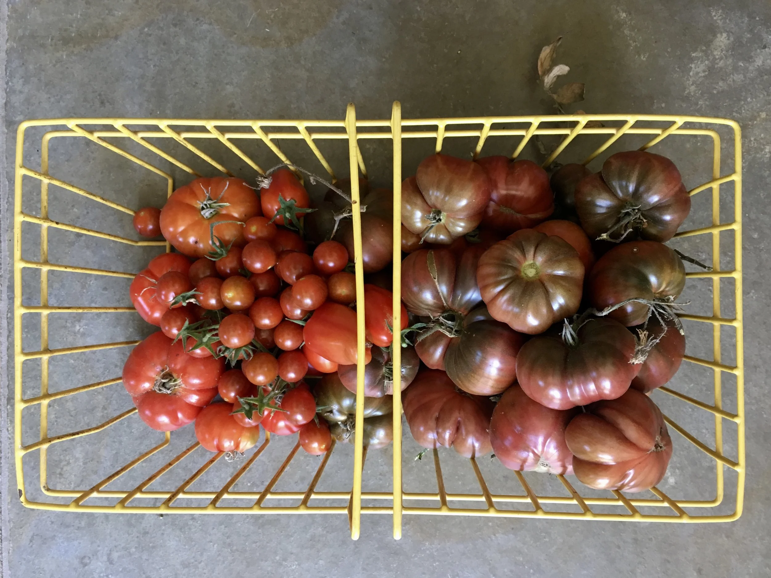 ‘Black Krim’ has been productive and the even the largest fruits didn’t split. I’ve given away dozens of them. The cherry tomatoes have been abundant but unremarkable—not the black cherry tomatoes I was expecting.