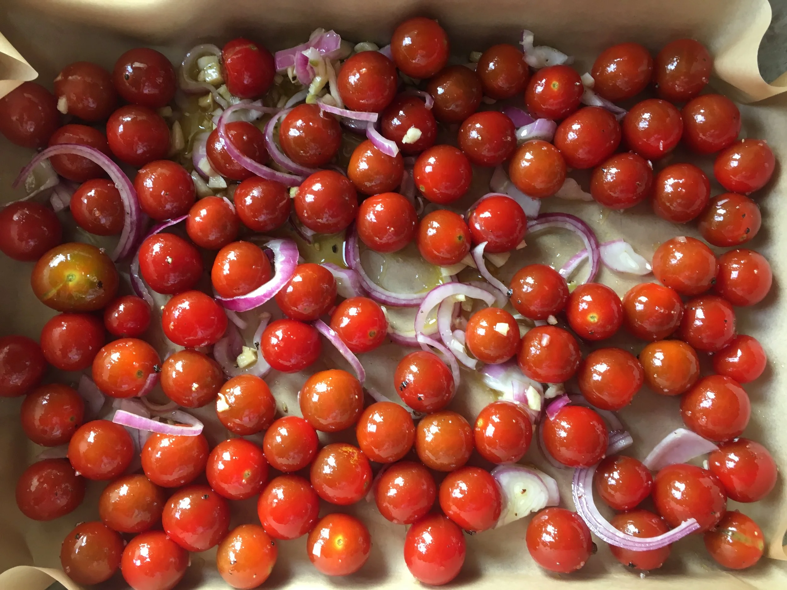 A large harvest of the cherry tomatoes roasted with garlic, my red onion and olive oil went to the freezer for a future pasta dinner but I also mixed some with black beans and red pepper for lunch. The San Marzanos and others made sauce for the freezer and eggplant Parmesan.