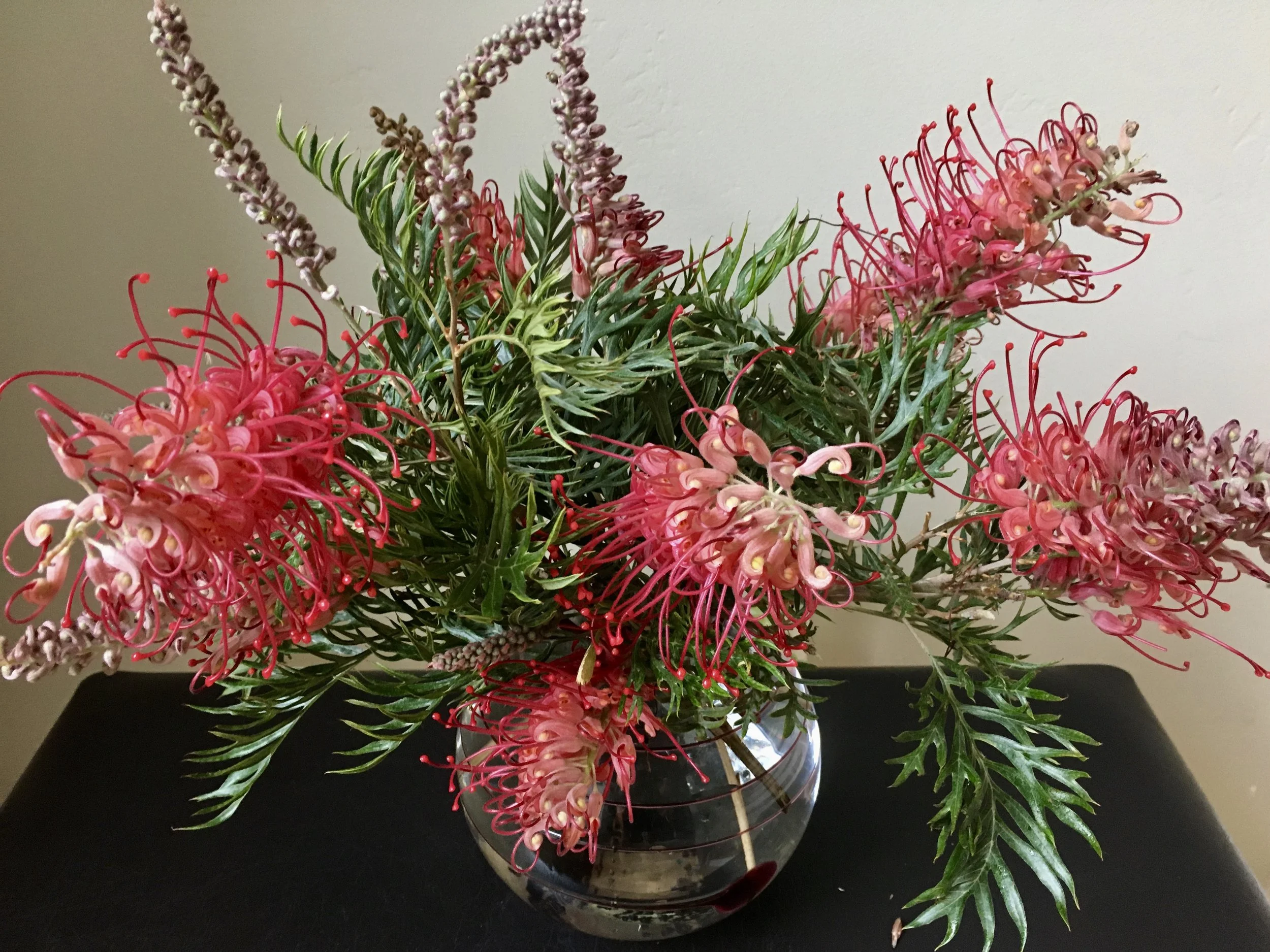 ‘Robyn Gordon’ grevilleas, Australian in origin seem to like our Mediterranean climate, producing gorgeous blooms most of the year.