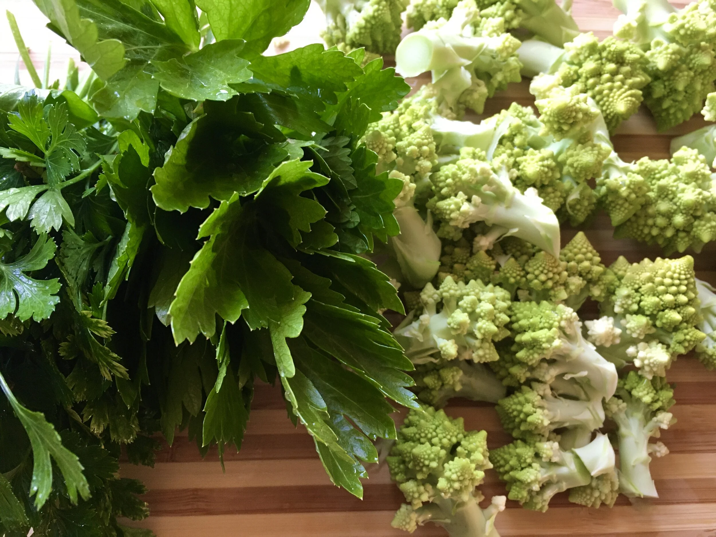 With only one head of Romanesco I chose to make Roasted Romanesco Cauliflower Pesto Spaghetti again. It’s not basil season in SoCal so I used parsley and a few celery leaves for the pesto. I’ve resolved to grow Romanesco from seed next year and plant more.