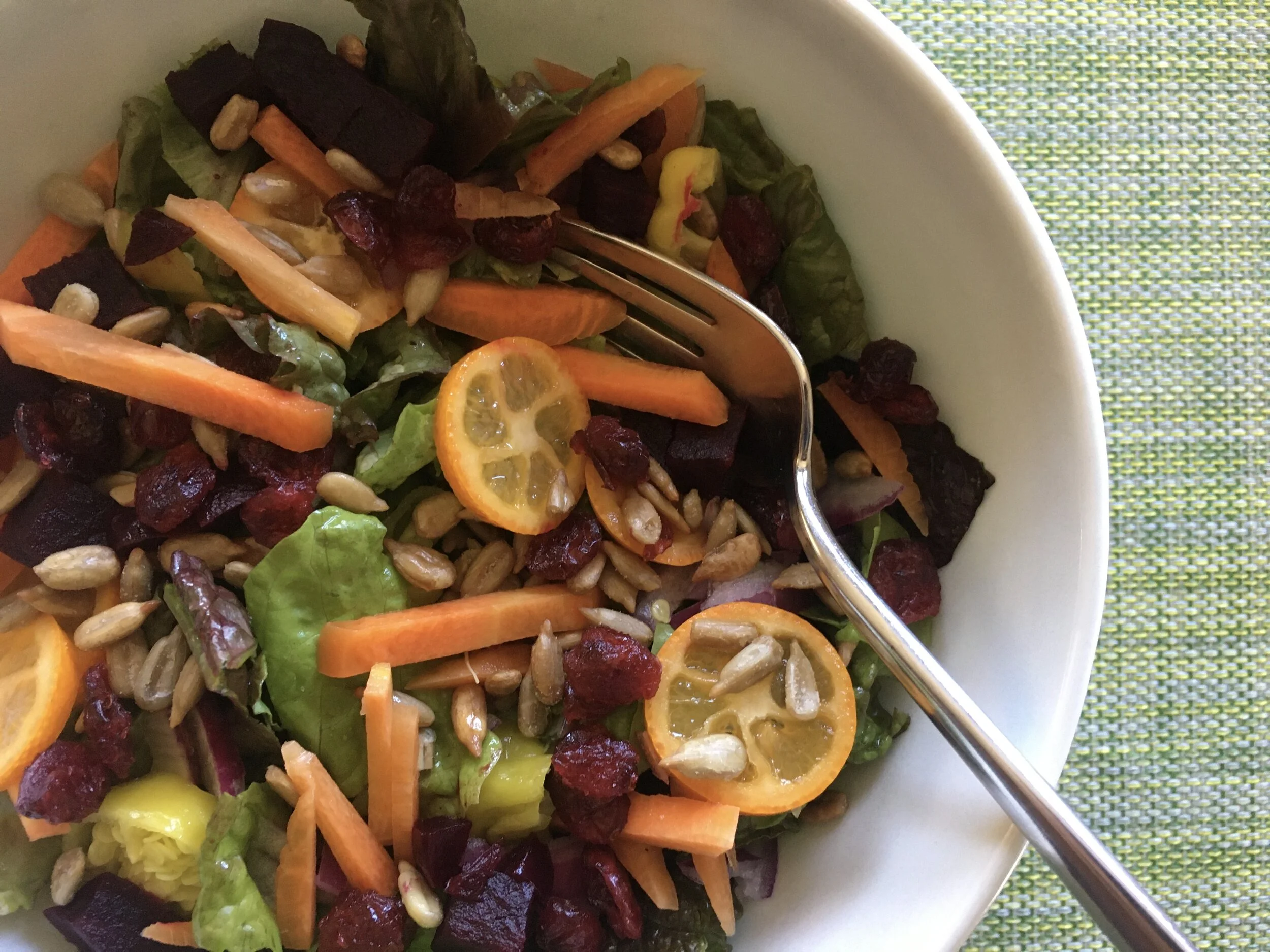 The ‘Catalina’ spinach is especially lush this winter. I sautéed it in some chili-infused olive oil I made earlier in the week.