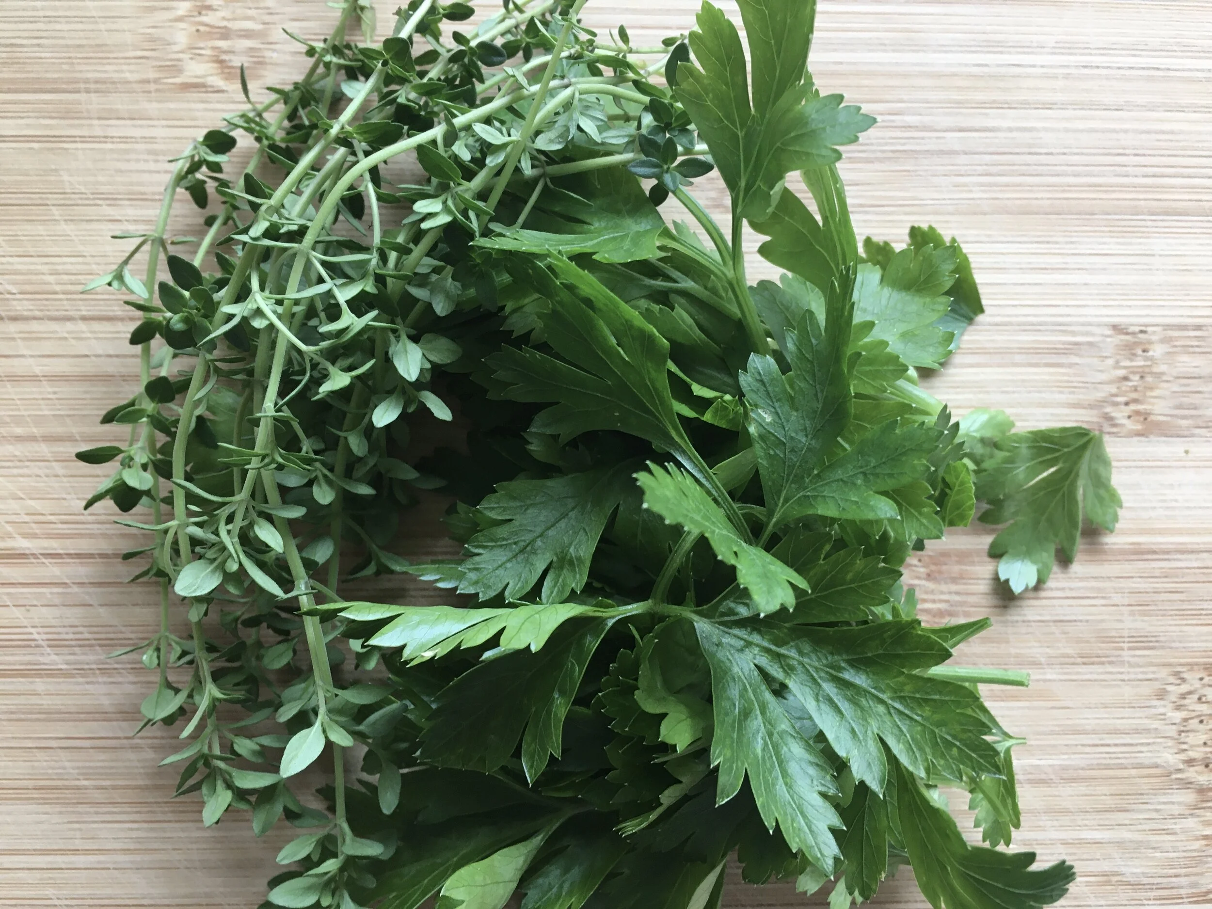 Last night I dashed to the garden to gather herbs for an infused herb oil to top servings of Ribollita. I pureed them with a couple garlic cloves and EVOO for a last minute addition to the soup.