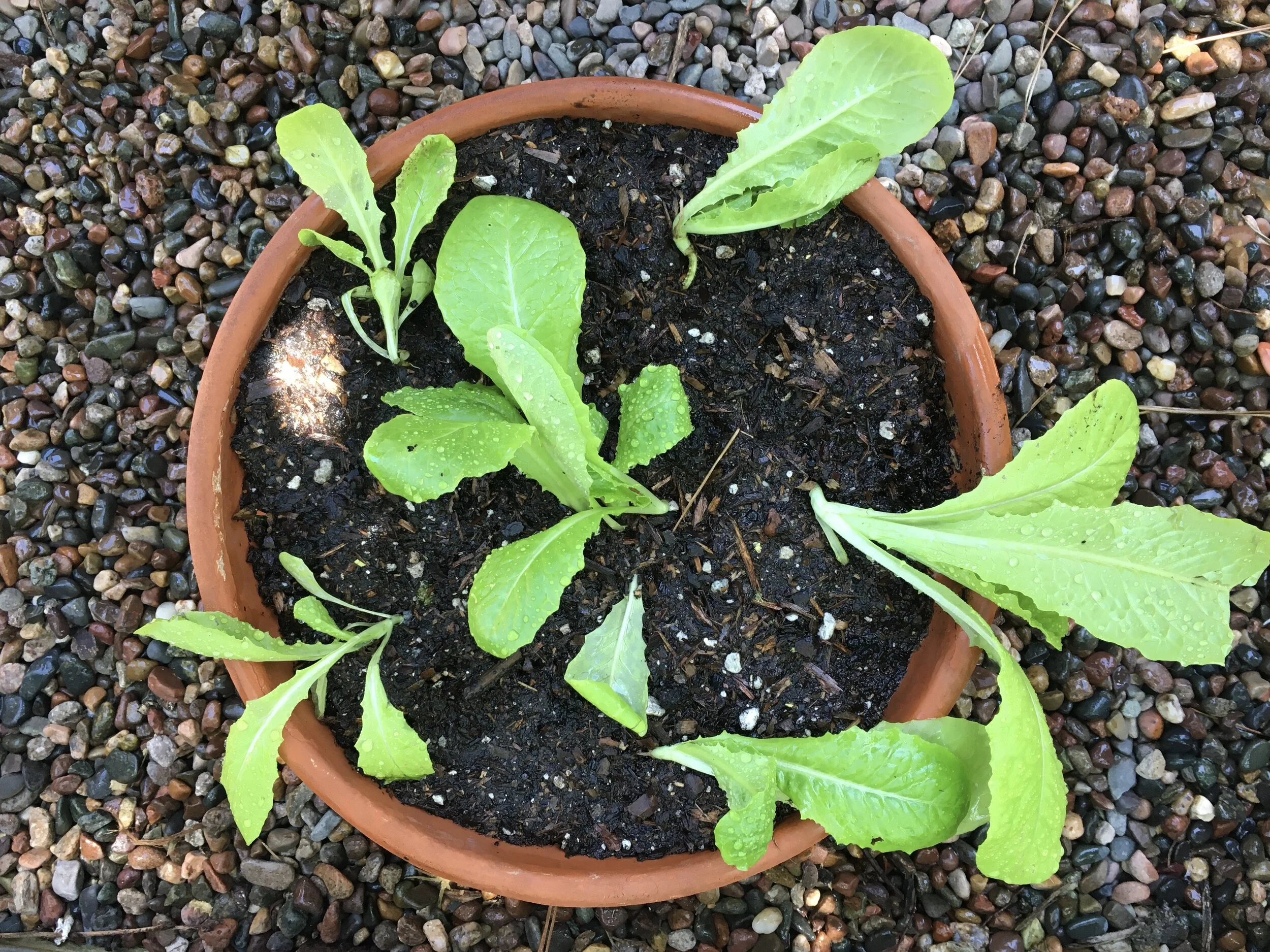 Here’s the lettuce bowl one month later. It wasn’t perfect—some worms and too much sun but it was lettuce for salads and sandwiches.