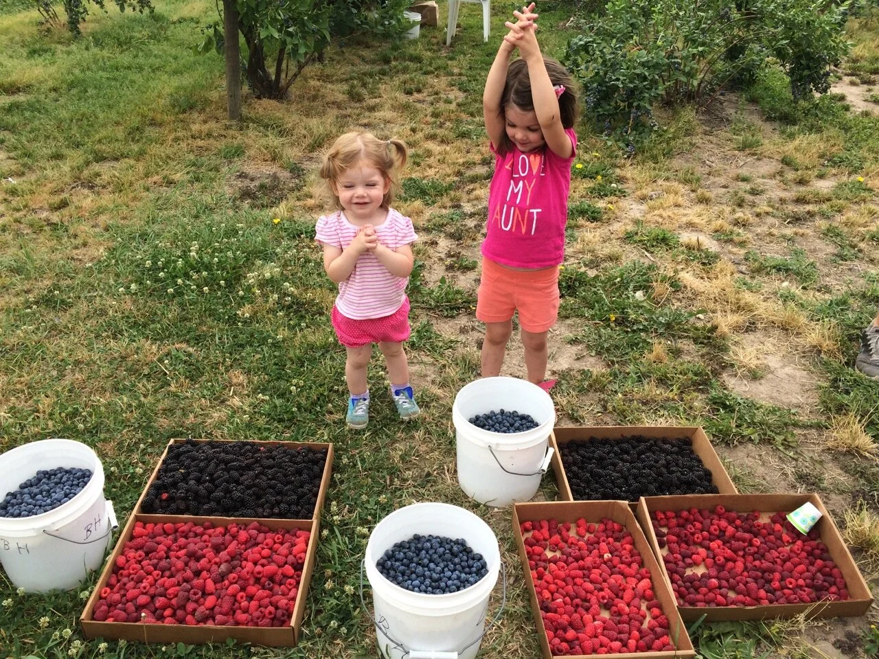 Yes, those are five-gallon buckets of blueberries next to the raspberries and marionberries.