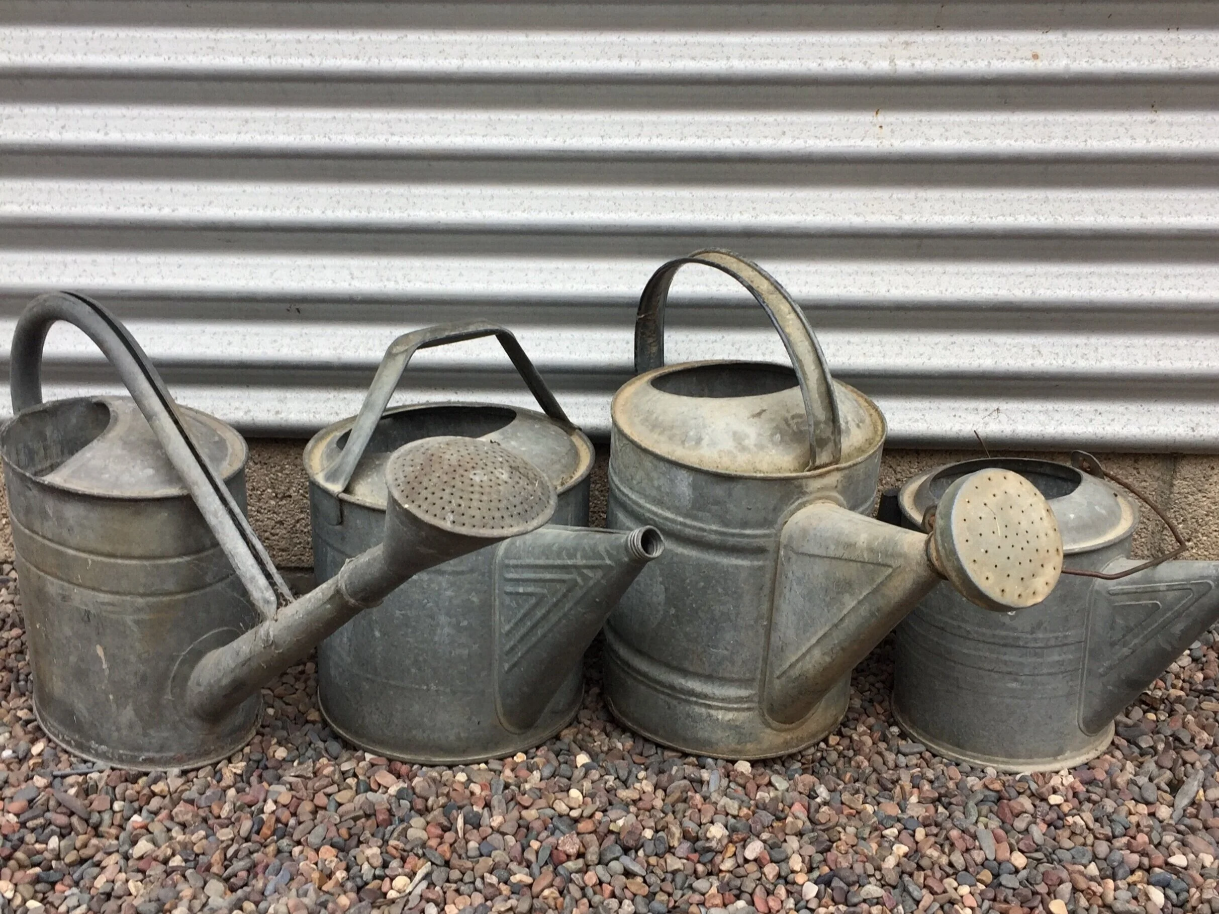 I have a thing about galvanized watering cans. I use them almost every day in my vegetable garden. The watering cans are immensely useful for distributing stored rainwater and they count as weight lifting.