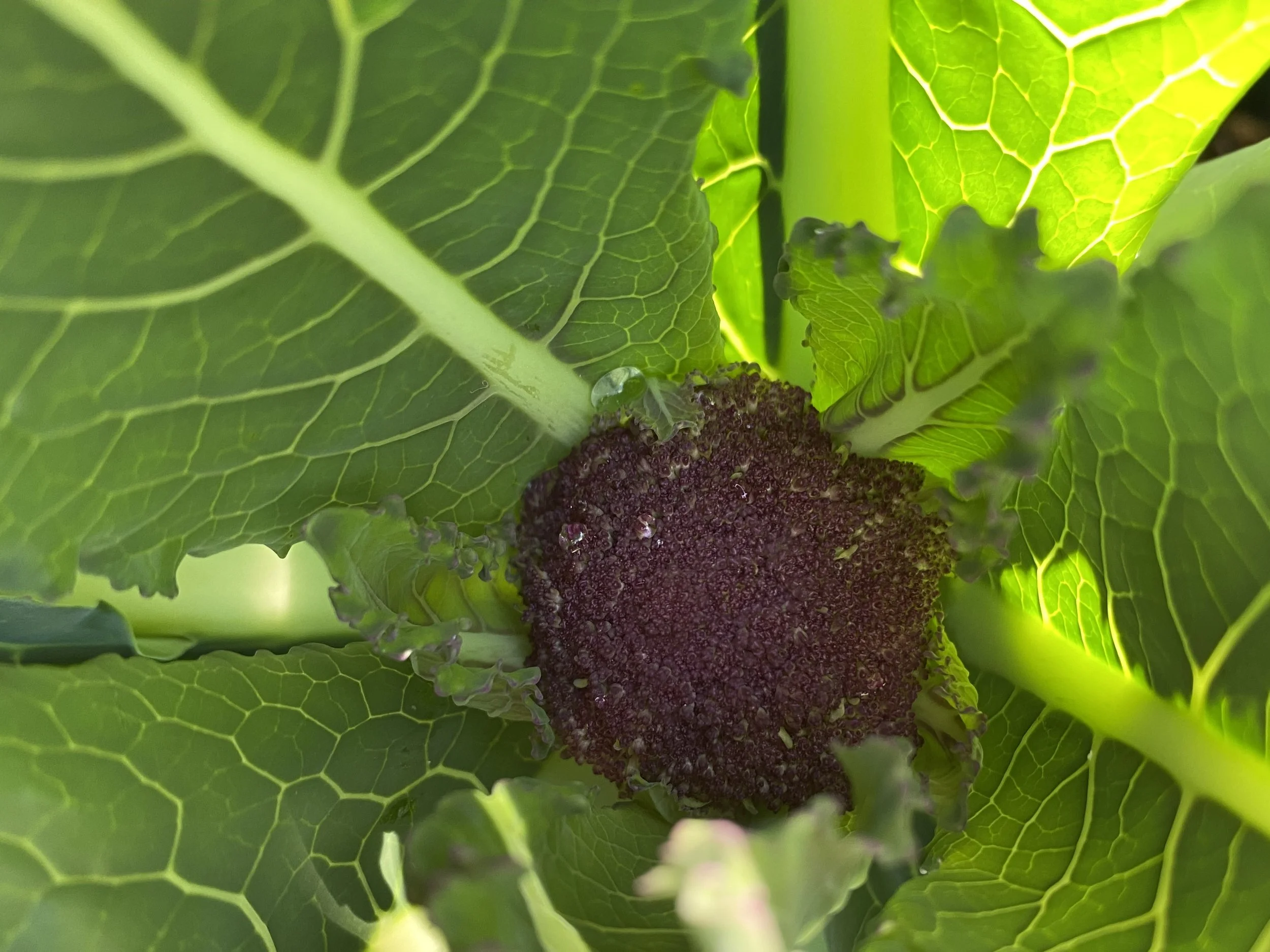 ‘Jacaranda’ broccoli produces full-sized heads on compact plants. It’s my first time to grow this variety. Seed from Territorial Seeds.