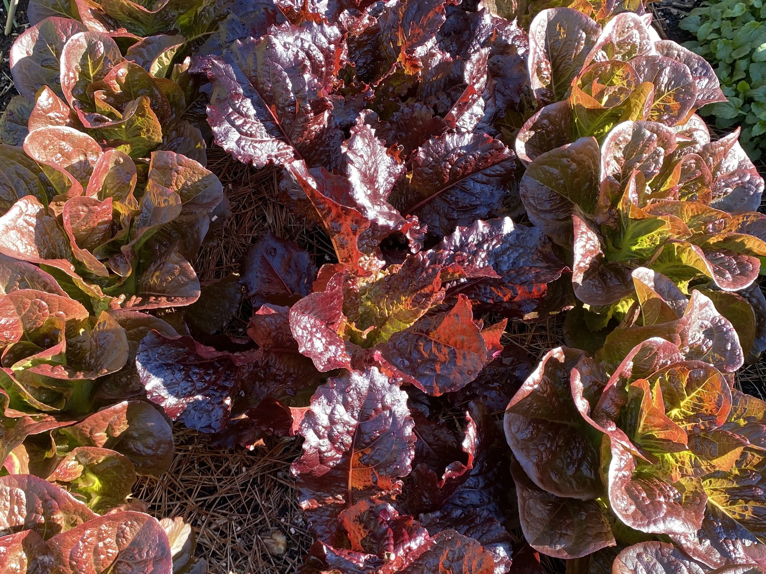 ‘Pomegranate Crunch’ and ‘Sea of Red’ lettuces.