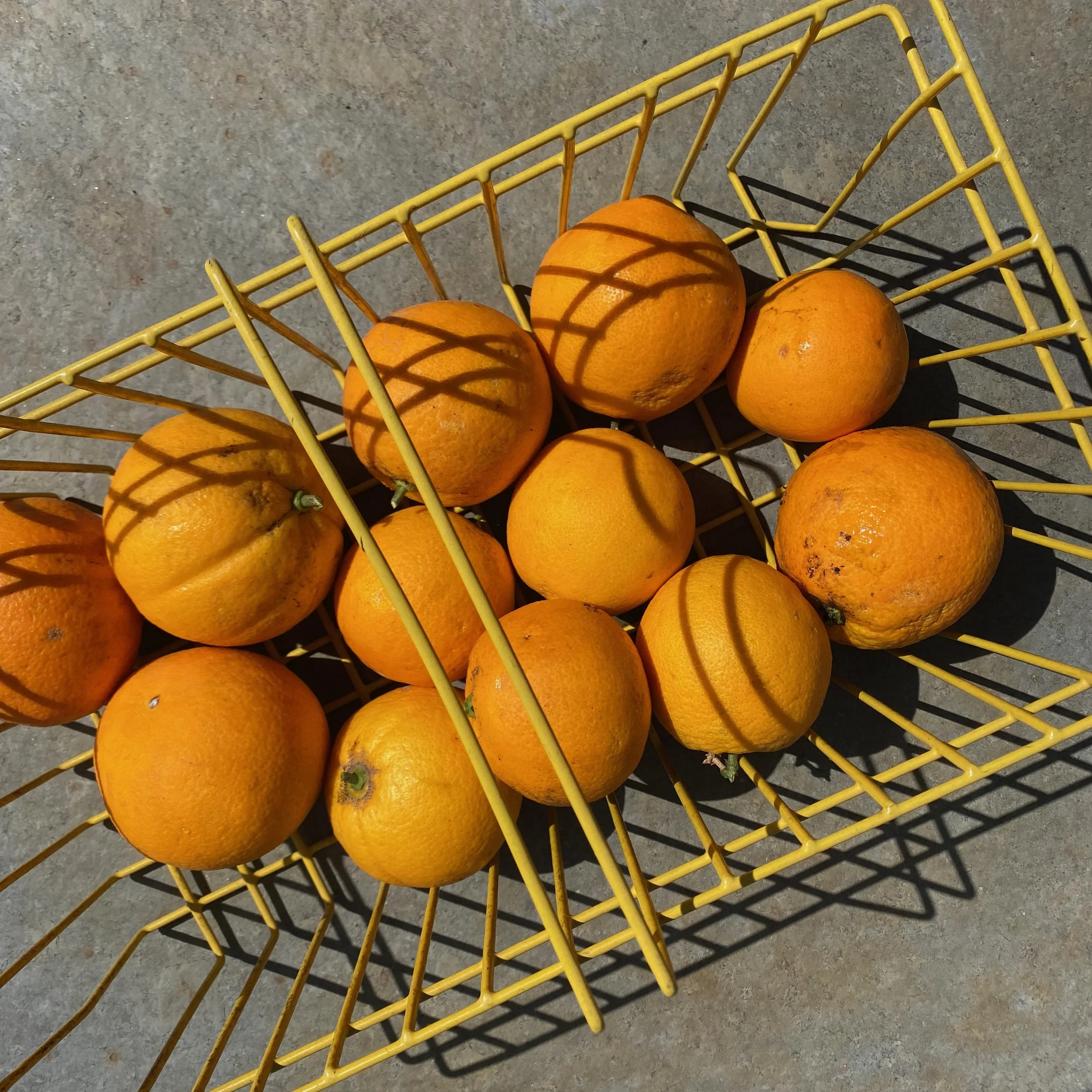 These oranges and a few more headed to LA along with a bag of Ruby Red grapefruit from Borrego Springs. Also tucked in were a half dozen jars of jam and marmalade, applesauce and frozen apricots. Oh, and my personal favorite, candied orange peels.