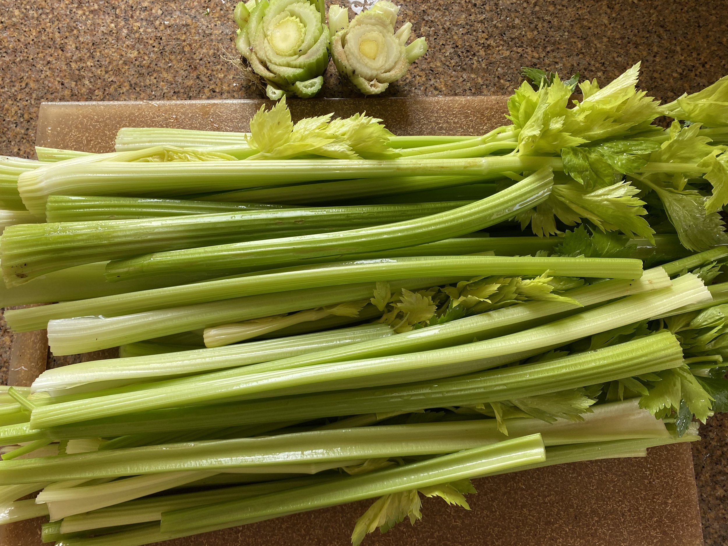 This is after the critter-worthy portions were removed (for the bunnies, guinea pigs and tortoise). I separated what was best for eating raw and what would be used in cooking. Cream of celery soup is on the menu this week.