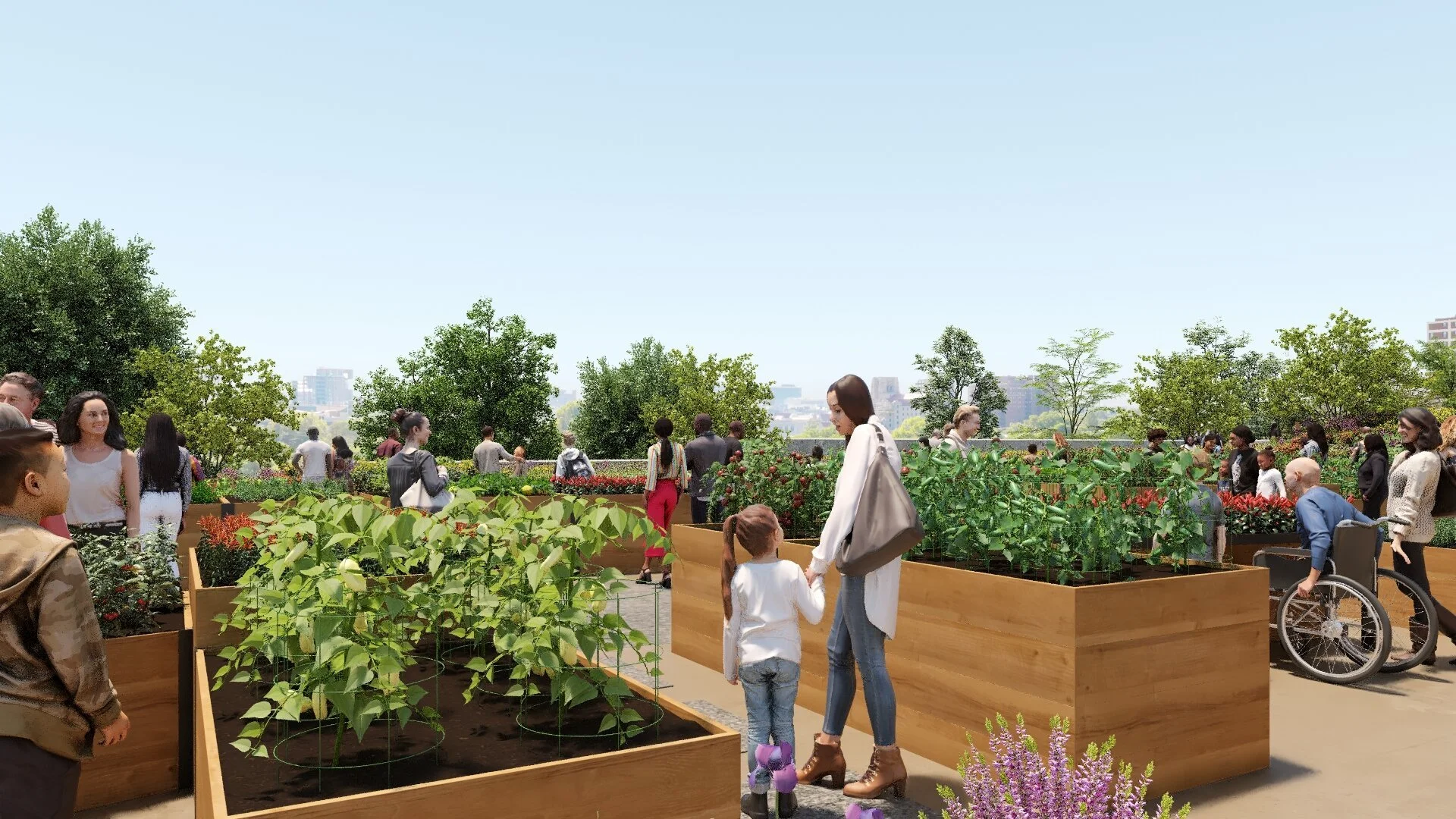 A rendering of the Eleanor Roosevelt Fruit and Vegetable Garden at the Obama Presidential Center.