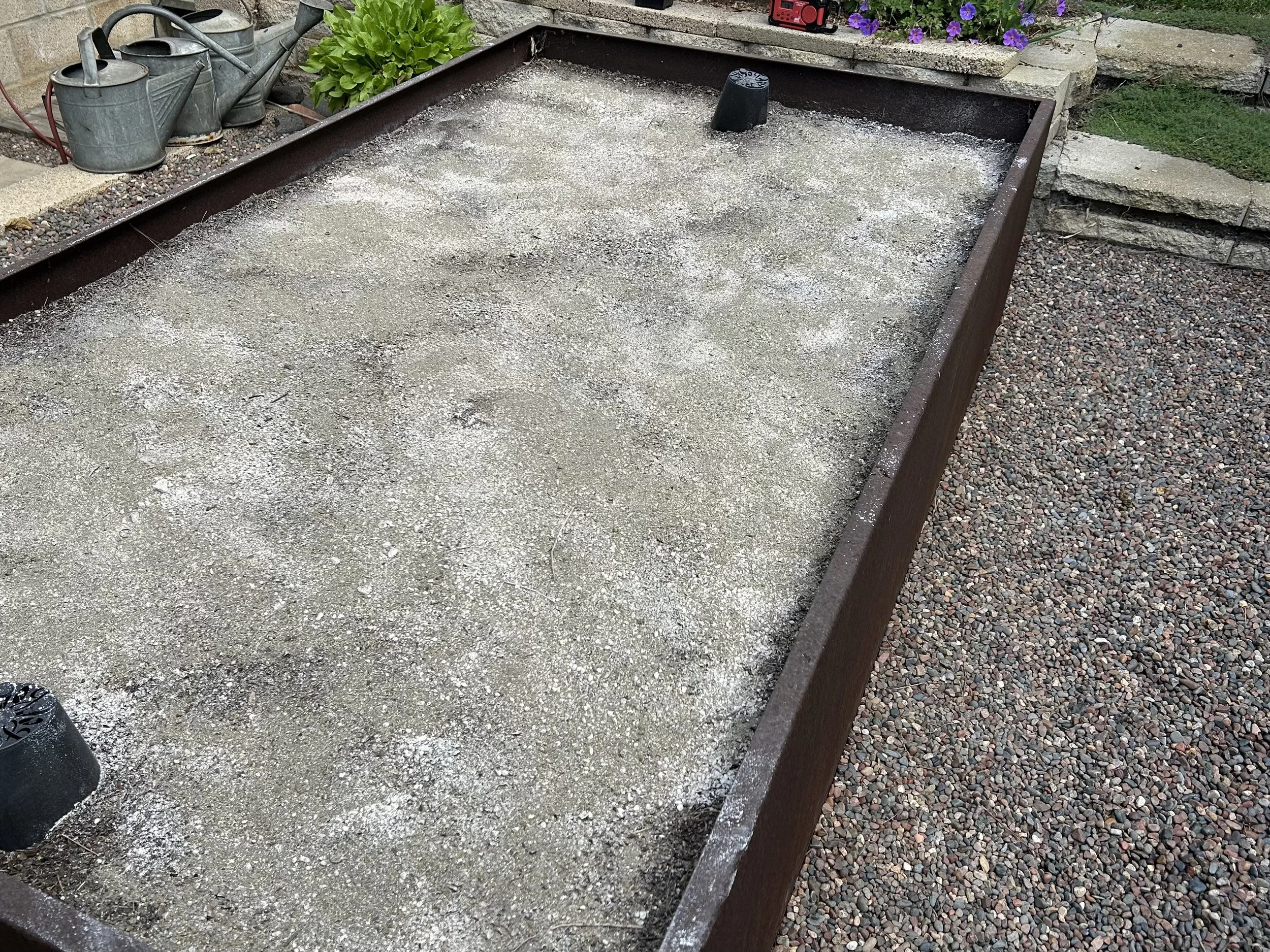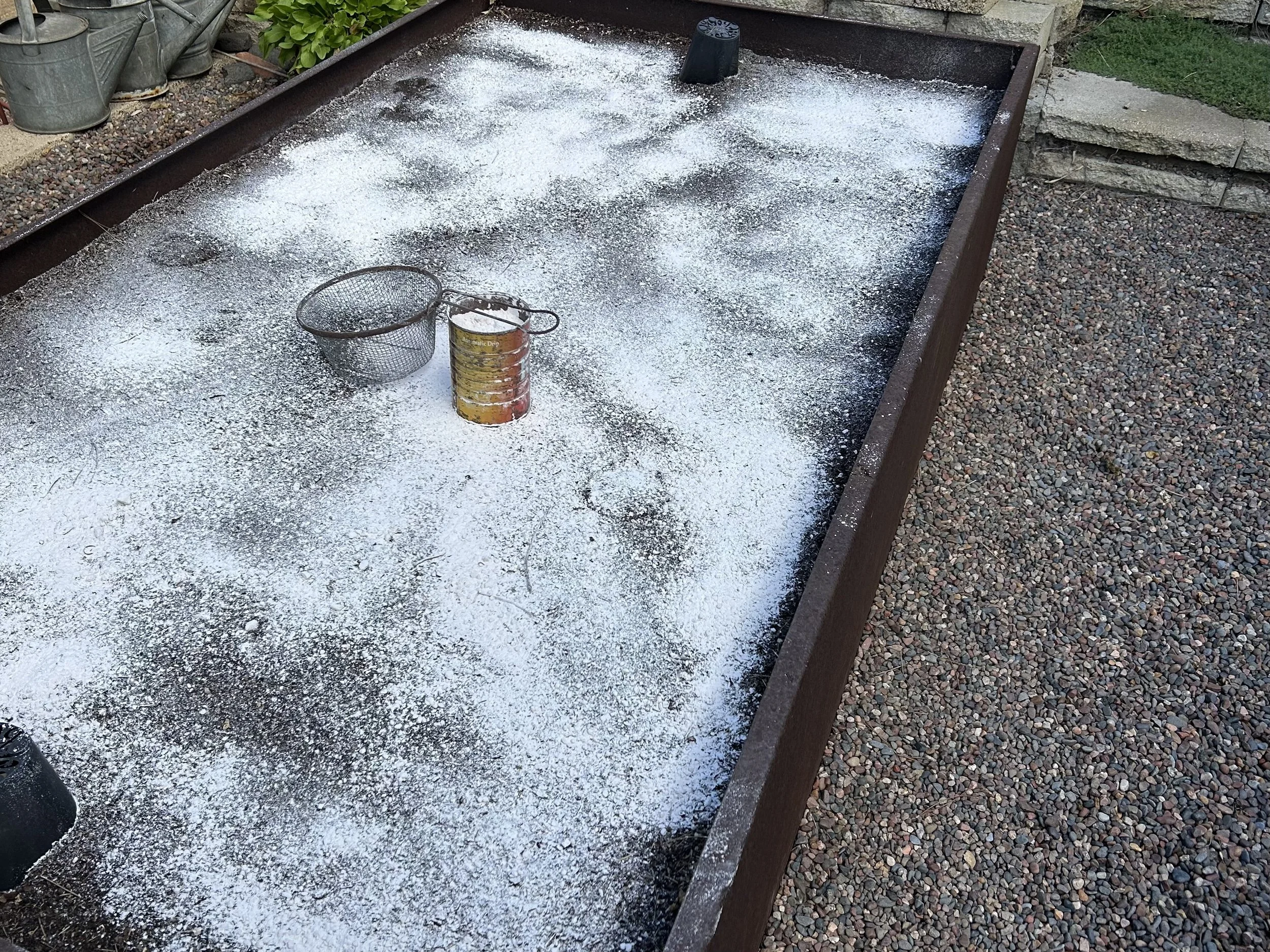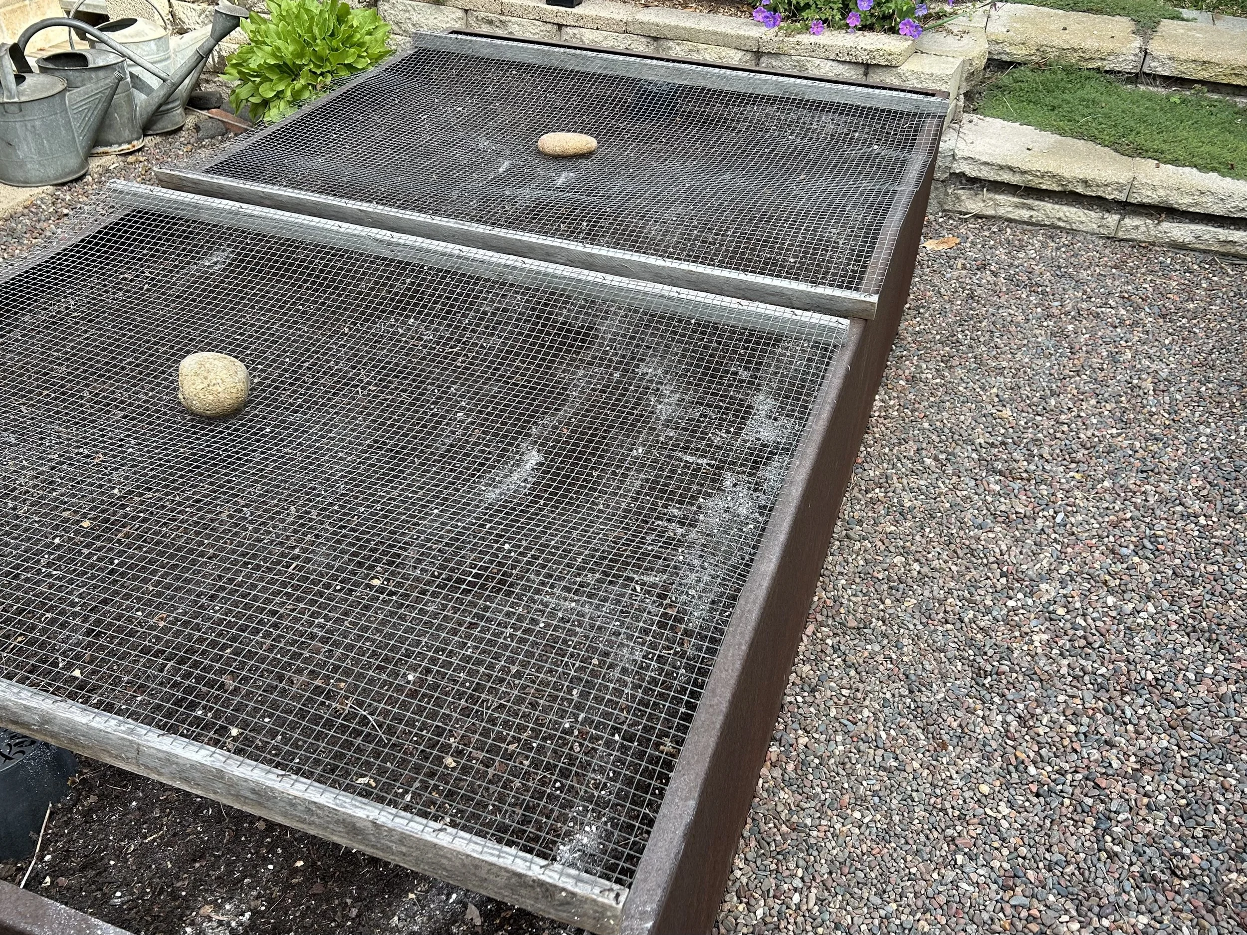 Screens cover the bed until I’m ready to plant, discouraging interlopers.