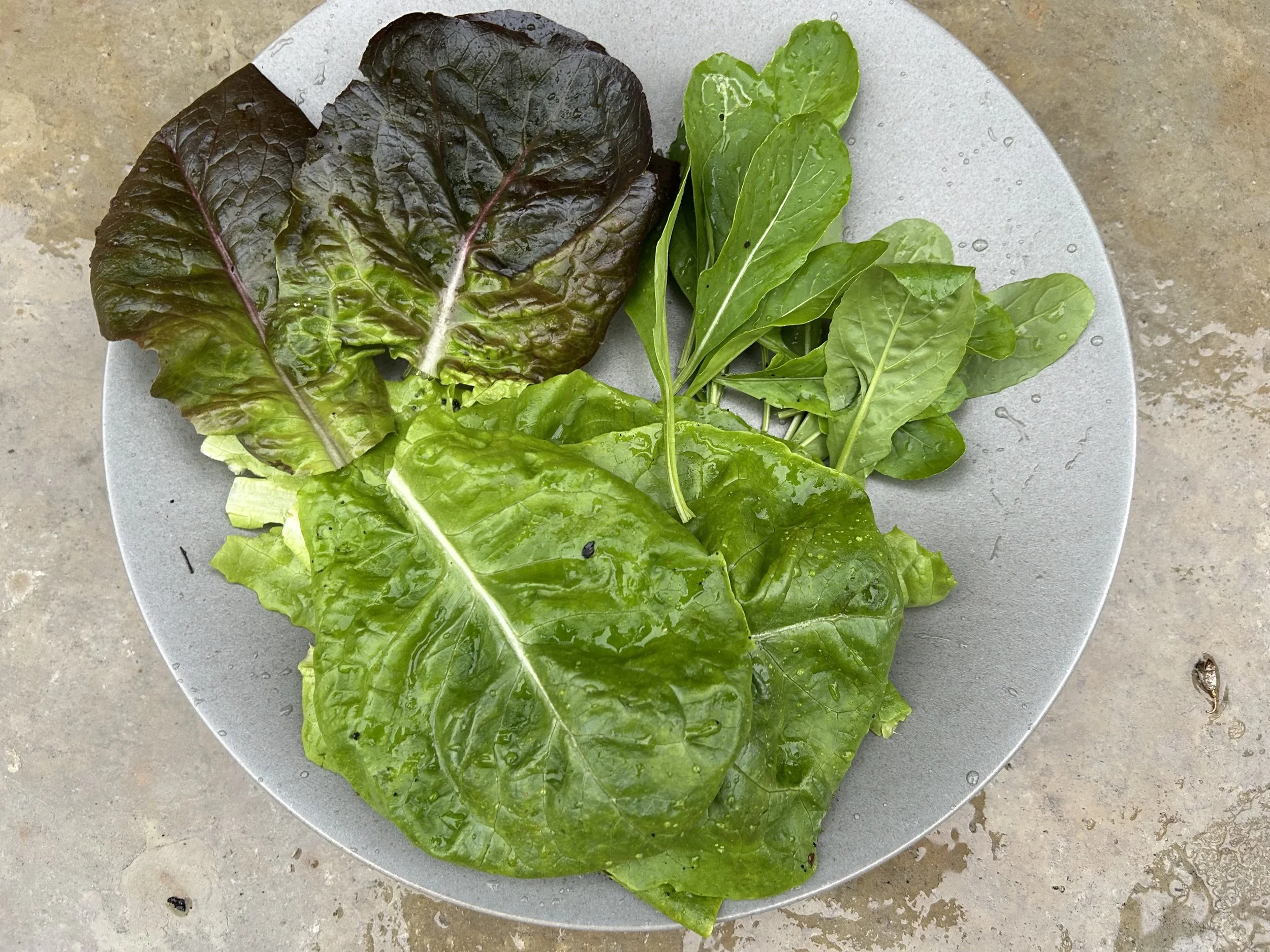 I selectively harvest a few leaves of lettuce and arugula for salads. I’ve direct seeded more Rosaine (darker leaf) and need to continue starting the various lettuces I so enjoy.