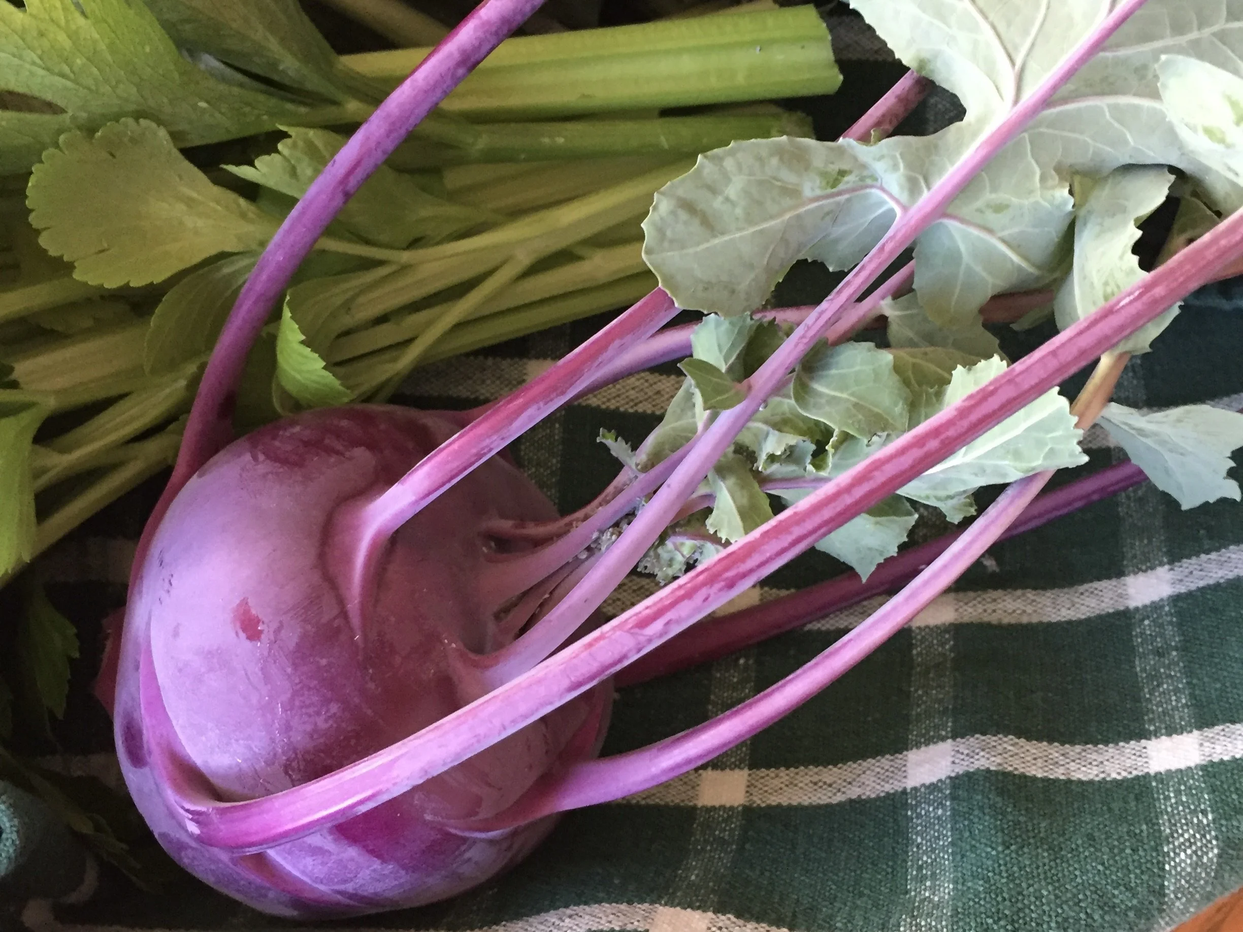 Honestly, I think I plant it for the colors—the magenta stems and veins against the blue-green leaves. Some years ago I planted the red kohlrabi for the stunning colors and only a marginal interest in the vegetable.