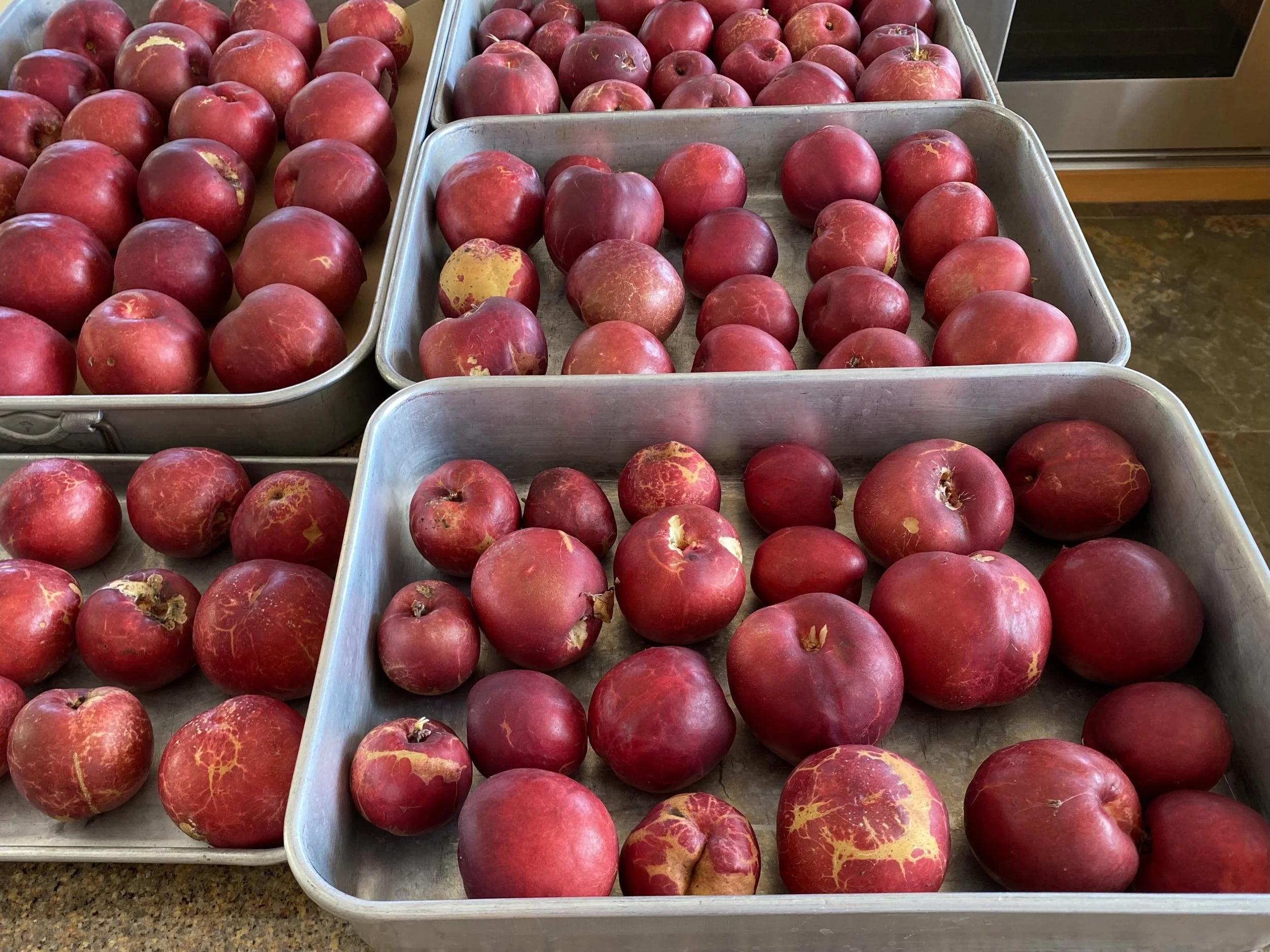 We’re down to two pans holding in the fridge and only a couple dozen more on the tree. It’s finishing on schedule by August 1. Vacations happen in August when all the stone fruit harvests finish.