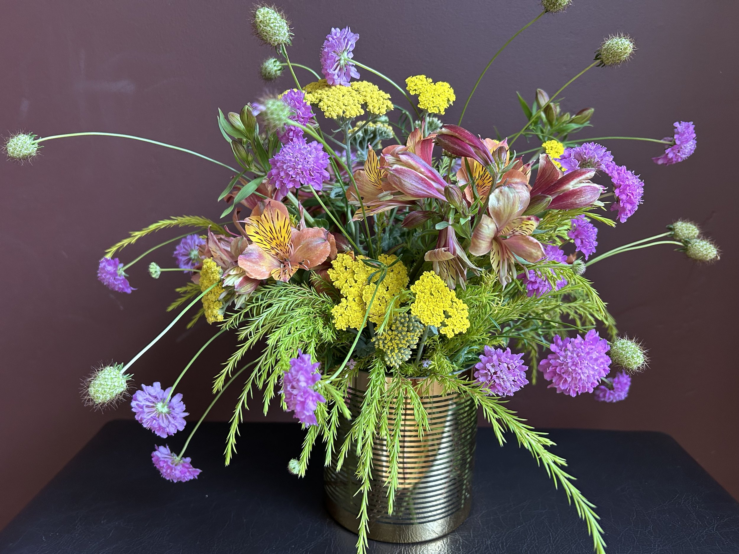 Sunday’s church entry bouquet was a delight to put together with available color harmonies pulling from the alstroemerias.