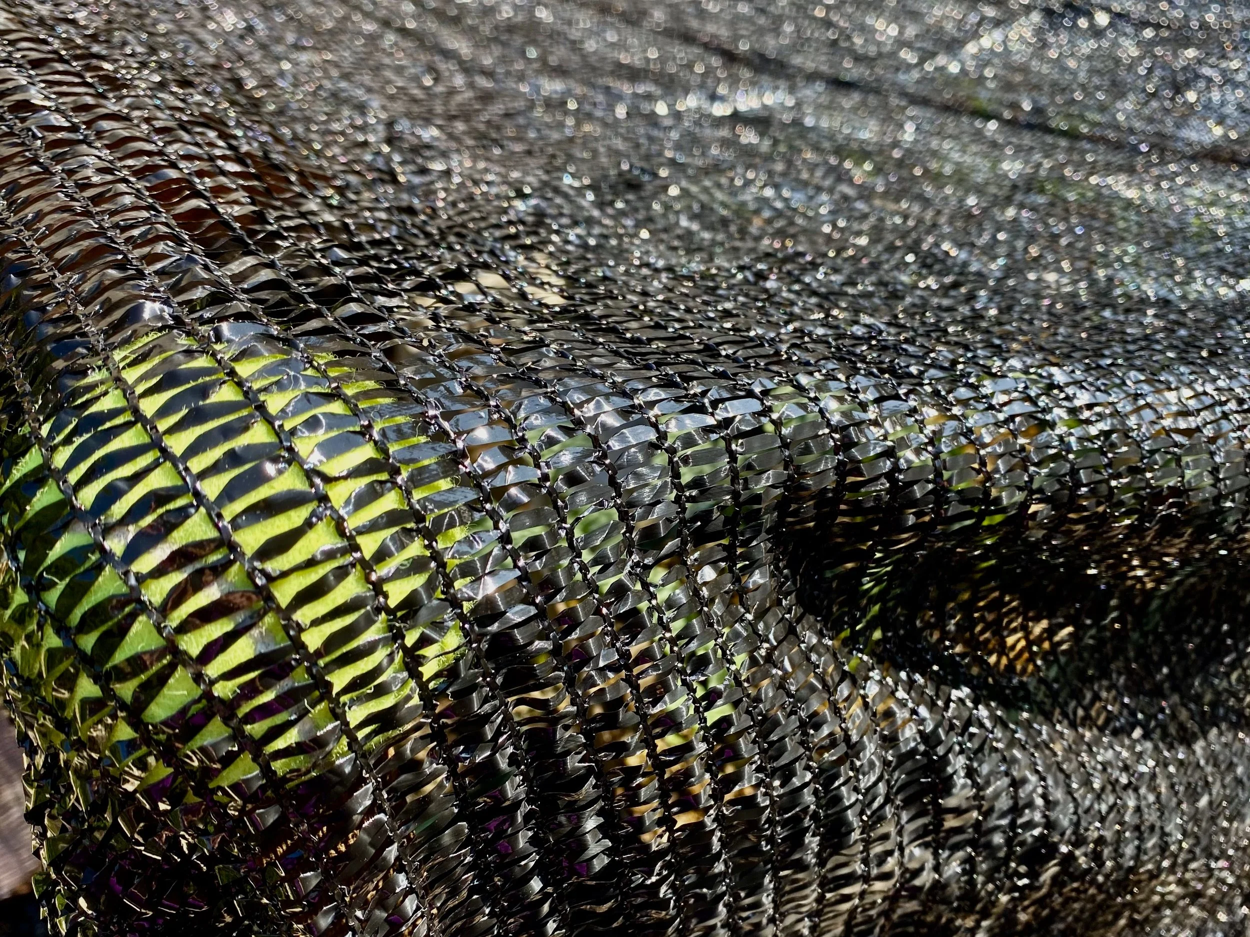 This shade cloth by Gardeningwill drapes easily. I especially like the “knitted” shade cloth which resists tearing and fraying. Check your local nursery for this useful product. Amazon carries a number of knitted 40% shade cloth products in various sizes.