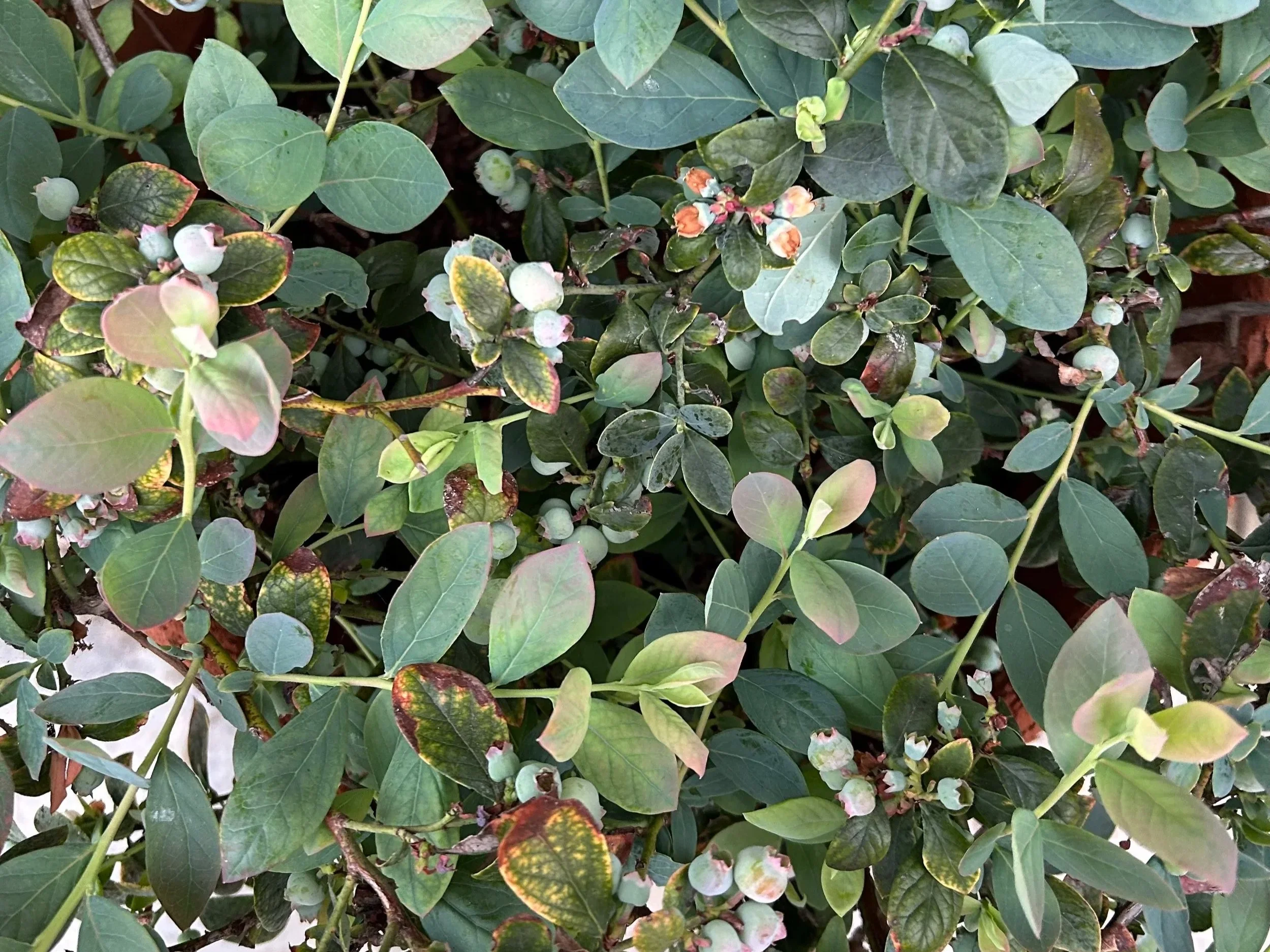 Bountiful Blue blueberries are coming along in the patio container.